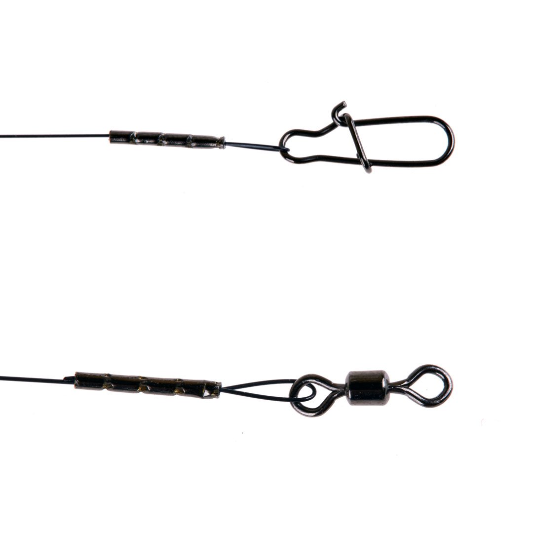 Жёсткий (упругий) одножильный поводок для спиннинговой ловли. Применяется никель-титановый материал, изготовленный по специальному заказу и подвергнутый особой обработке. Имеет наноструктуру и эффект памяти формы. Может многократно растягиваться под нагрузкой до 8% без каких-либо последствий для прочности. Выдерживает при изгибании на 90 градусов более миллиона циклов! Легче и прочнее стали. Не подвержен коррозии, не имеет «вкуса» металла, не токсичен. Имеет чёрный матовый цвет. Не создает излишние световые блики под водой, не дезориентирует и не пугает хищника.