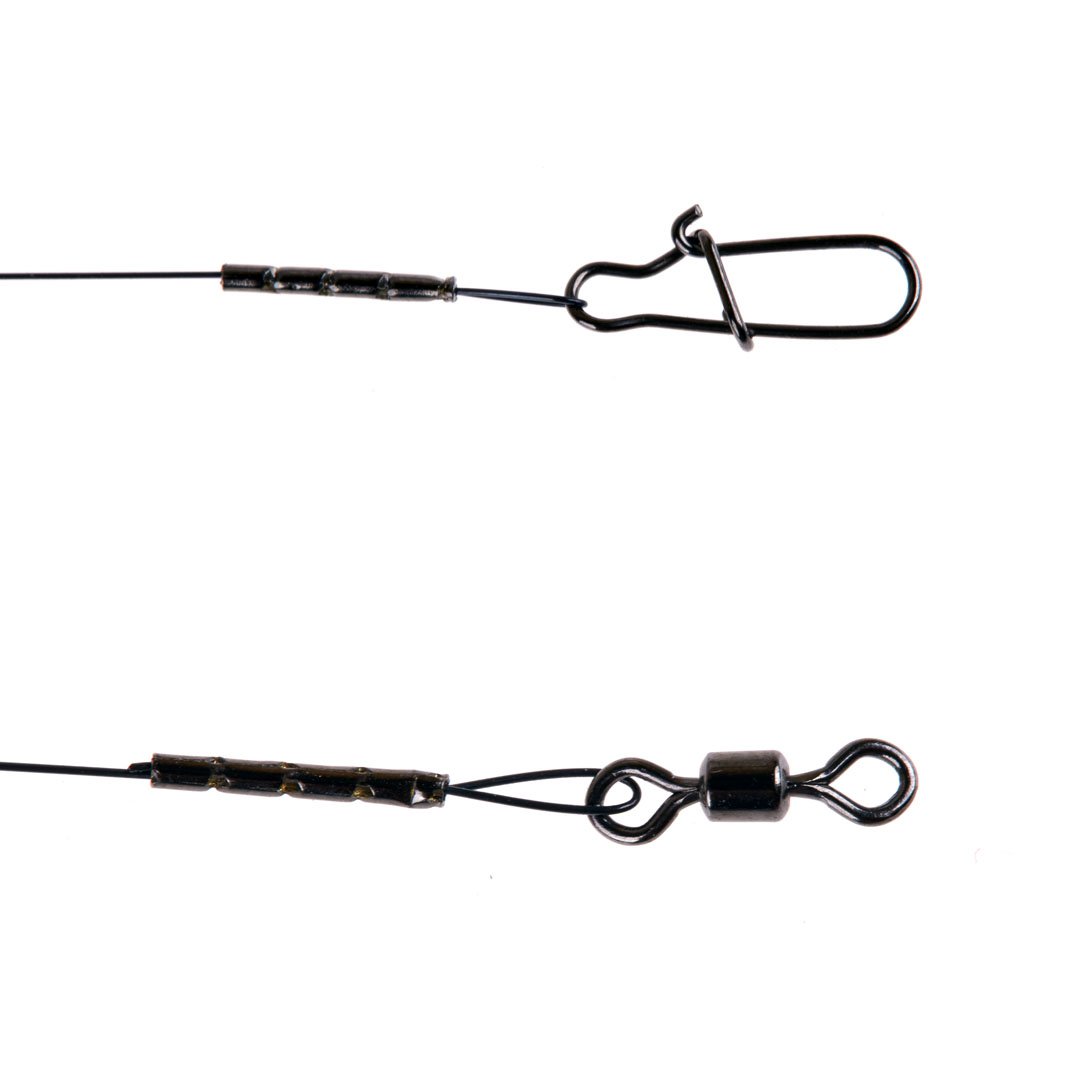 Мягкий одножильный поводок для спиннинговой ловли. Применяется никель-титановый сплав, изготовленный по специальному заказу и подвергнутый особой обработке. Имеет наноструктуру и эффект памяти формы. Может многократно растягиваться под нагрузкой без каких-либо последствий для прочности. Выдерживает при изгибании на 90 градусов более миллиона циклов! Легче и прочнее стали. Не подвержен коррозии, не имеет «вкуса» металла, не токсичен. Имеет чёрный матовый цвет. Не создает излишние световые блики под водой, не дезориентирует и не пугает хищника. Облегчённая и укороченная обжимная трубка. Специально подобранная фурнитура, не теряющая своих форм и надёжности при проверке поводка на разрыв по указанному тесту.