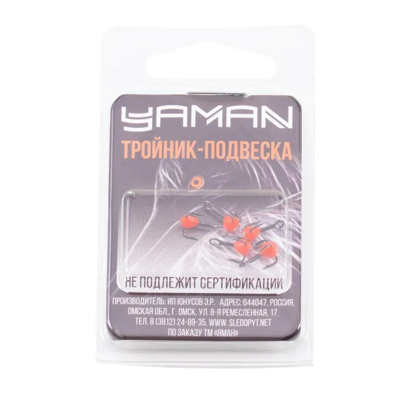 Крючок-тройник Яман (с каплей и глазком, 5 шт) флуоресцентный красный, №18