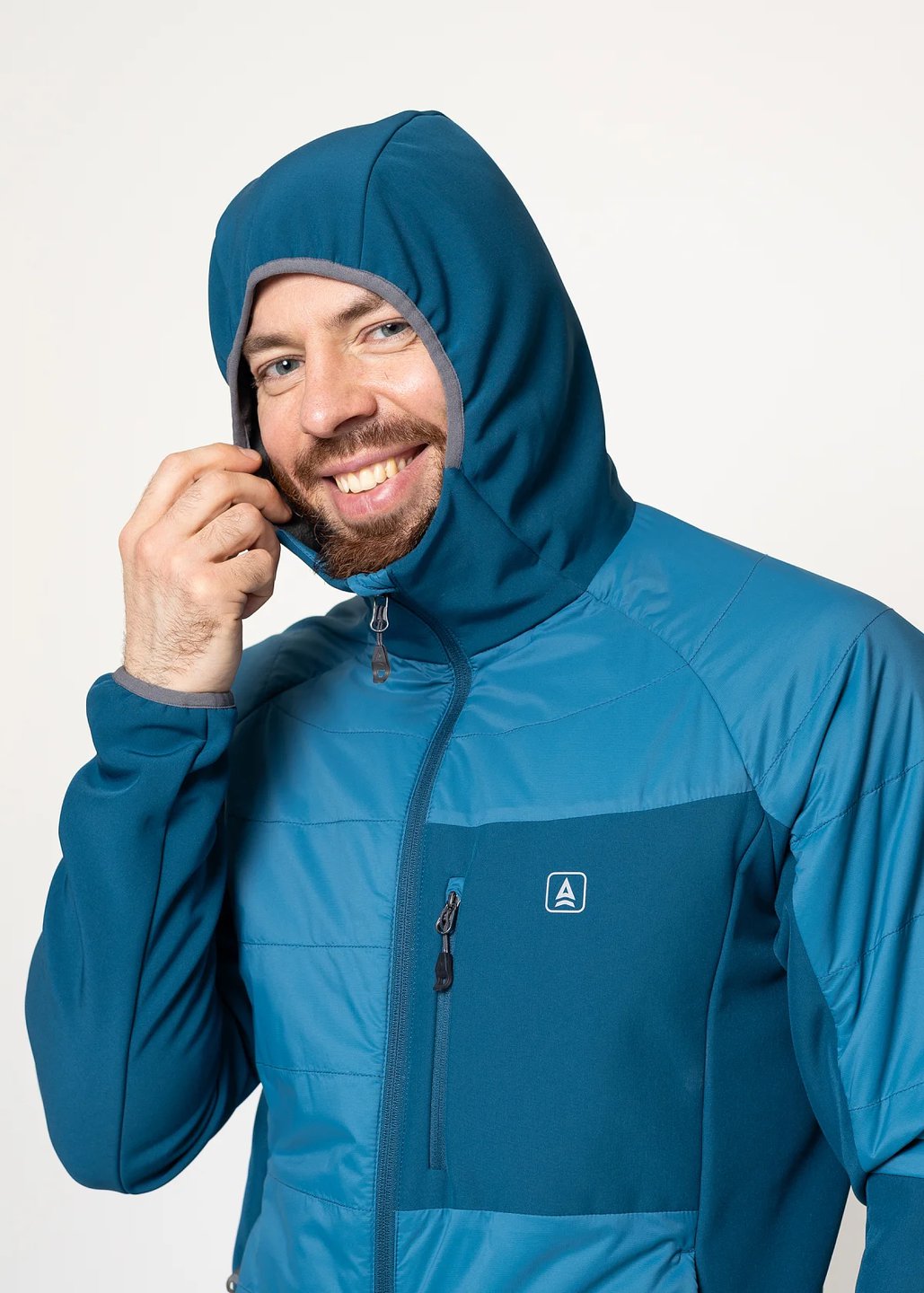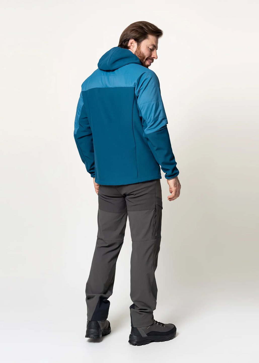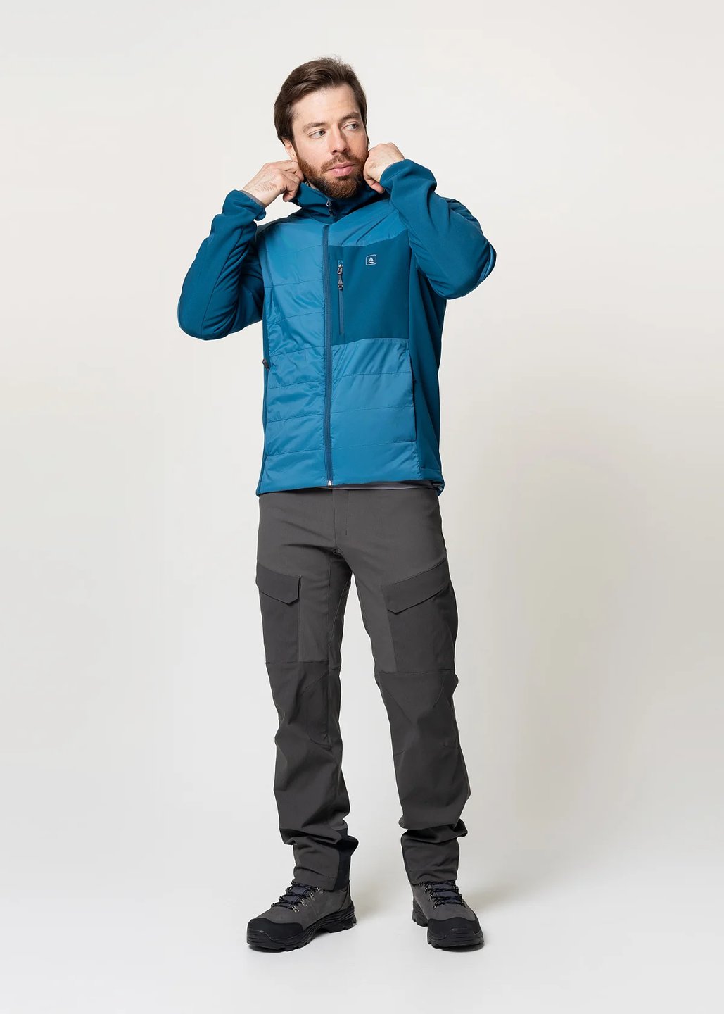 Мужская куртка гибридной конструкции: безмембранный тёплый софтшел с дополнительным утеплением и усиленной ветрозащитой передней части куртки, верха спины и плечей предоставляет оптимальный баланс тепла, ветрозащиты, дышимости и свободы движений в широком диапазоне нагрузок и погодных условий.