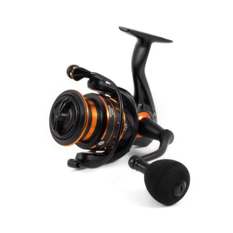 Серия Titan обладает мощным фрикционом, усиленной рукоятью с крупным кнобом для удобного хвата, а также нержавеющими экранированными подшипниками. Катушка имеет механизм прямого привода, где рукоять ввинчивается напрямую в вал из нержавеющей стали