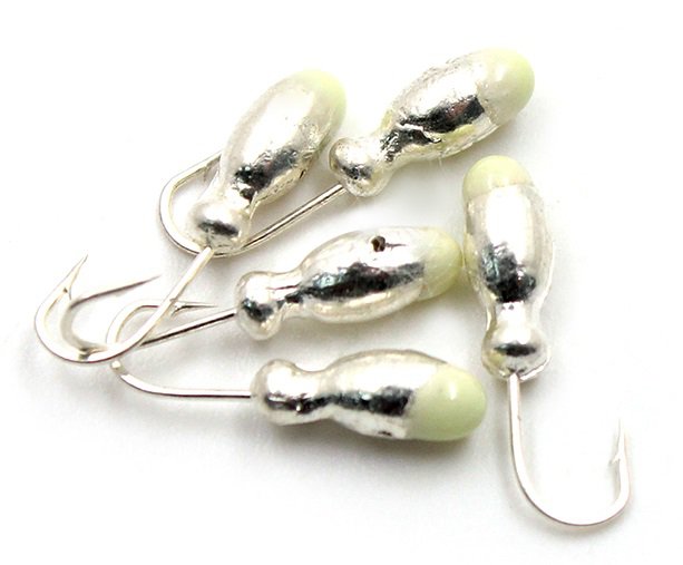 Мормышка свинцовая Яман Щелкун с отверстием с фосфорной пяткой Silver plated