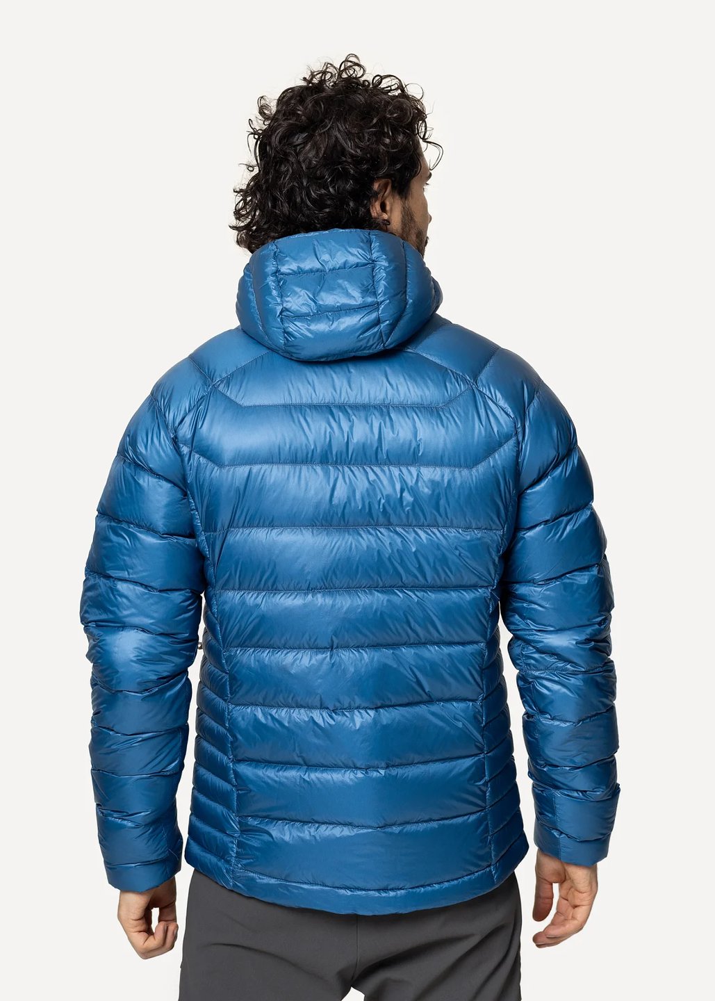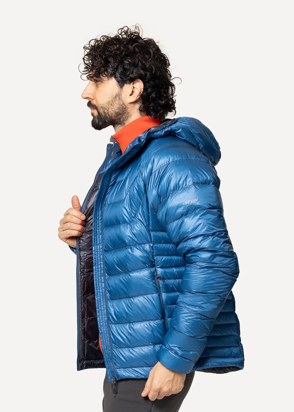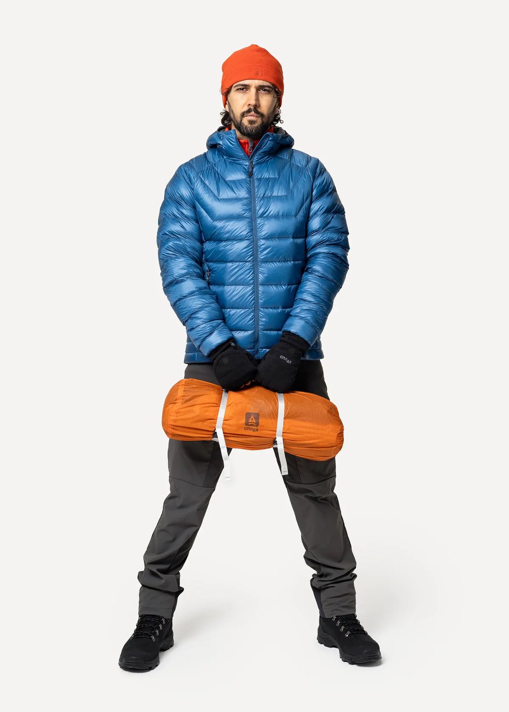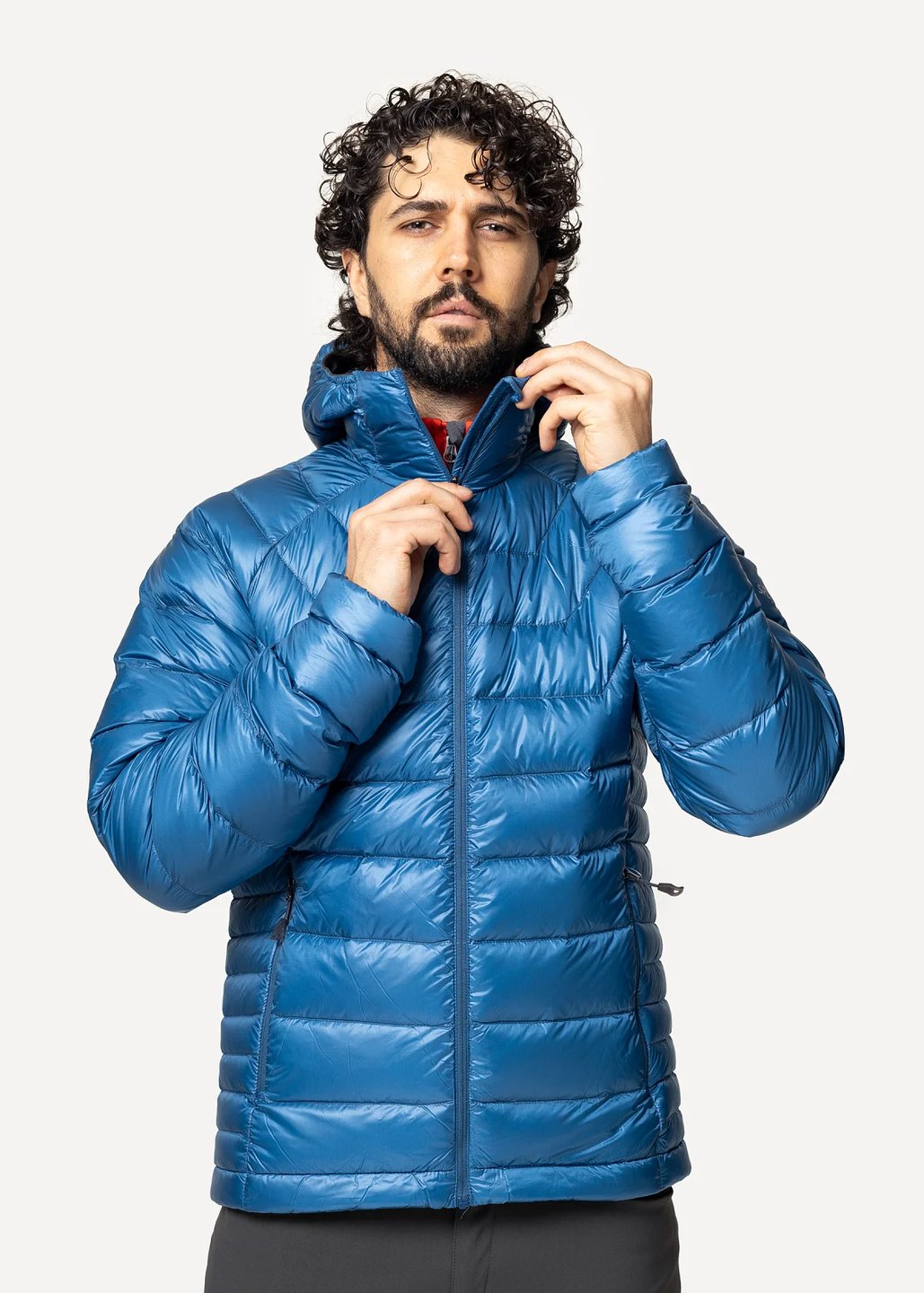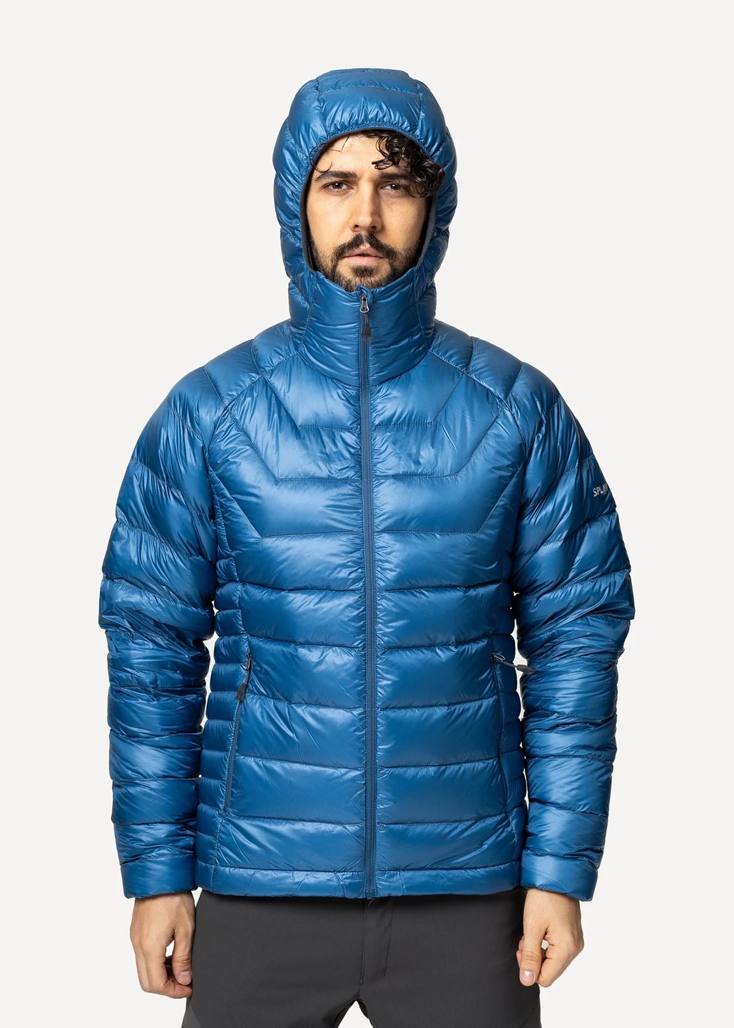 Высококачественный белый гусиный пух FP850 и ультралёгкая нейлоновая ткань верха и подкладки 10D плотного переплетения с брызгозащитной обработкой DWR обеспечивают необходимую защиту от низких температур, ветра и мокрого снега.