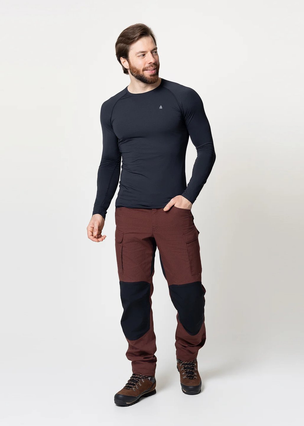 Сочетание прочного, устойчивого к истиранию микро-нейлона, эластичного спандекса и бамбукового волокна приводит к тому, что термобелье плотно облегает фигуру, отводит влагу, не раздражает кожу и не накапливает неприятные запахи.