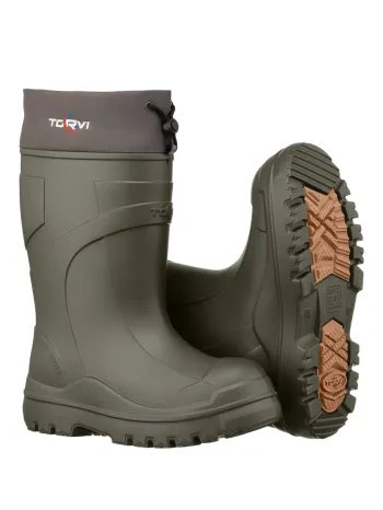 Сапоги мужские Torvi с 8-ми слойным сменным вкладышем (гипоалерненная трикотажная ткань) — обувь, которая создана для работы и отдыха в условиях сверхнизких отрицательных температур. Когда столбик термометра опускается намного ниже нулевой отметки, выручит специальная модель сапог из ЭВА Torvi с температурным индексом -60 °С.