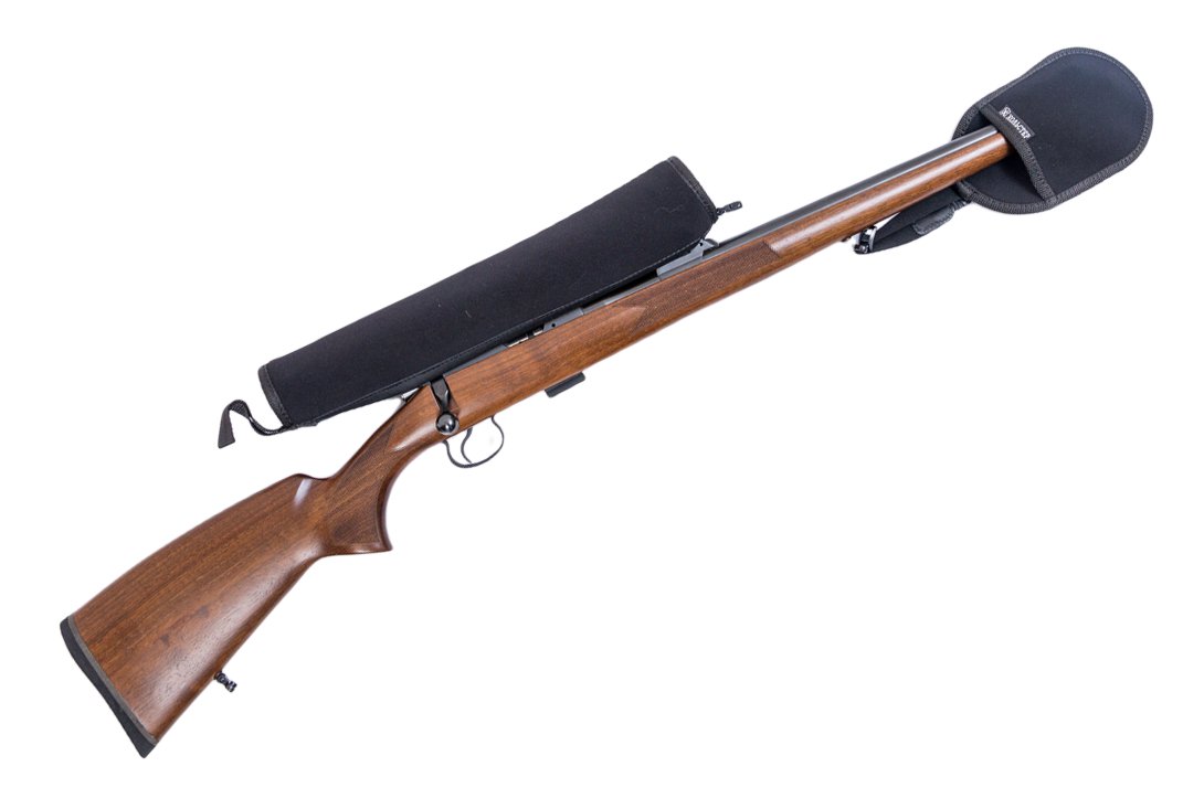 Легко натягивается на прицел, благодаря эластичности материала. Крепление к оружию предусмотрено только через чехол для среза ствола, который крепится на переднюю антабку. Рекомендуется использовать в комплекте с ремнями карабинными NEO и чехлом под срез ствола NEO.
