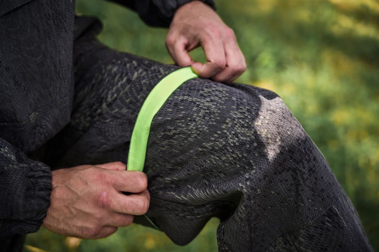 Костюм оснащен антимаскитной сеткой, которая легко убирается в специальный нагрудный карман. На куртке и брюках имеются ловушки, изнаночная сторона которых выполнена из яркой ткани, чтобы легко можно было увидеть клеща. Для обеспечения полной защиты на куртке с изнаночной стороны есть специальная юбка, которая заправляется в брюки и, тем самым, исключает попадание клеща под одежду. Для этой же цели на брюках предусмотрены очень плотные манжеты.