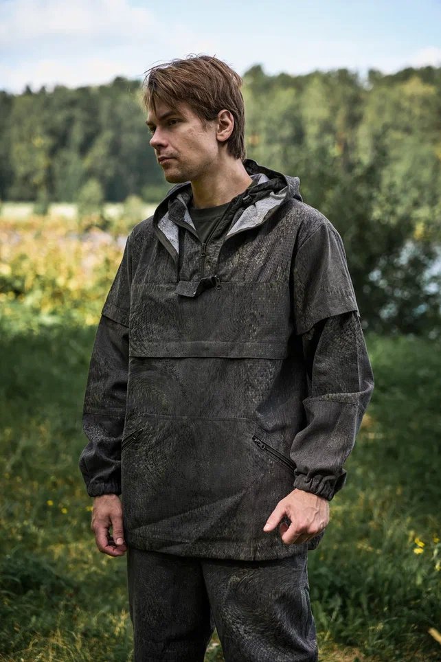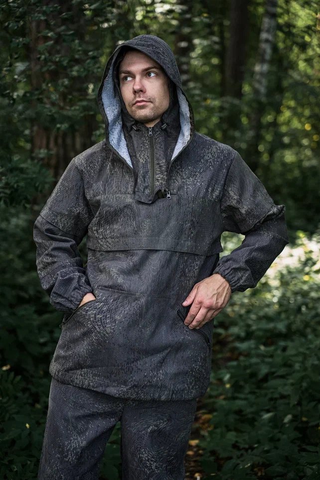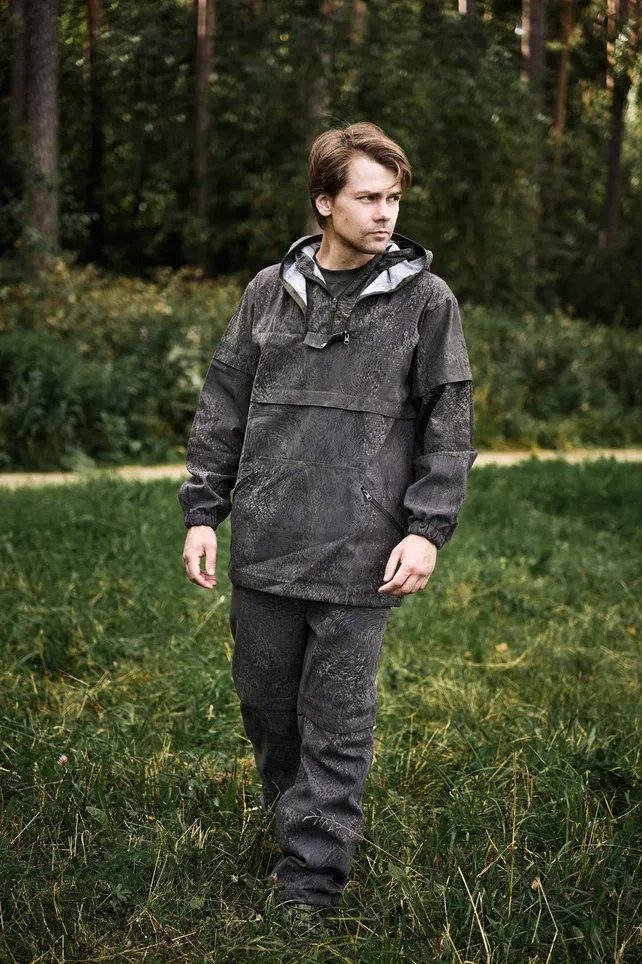 Костюм состоит из куртки-анорака свободного кроя с капюшоном и брюк прямого кроя. В костюме будет комфортно и легко двигаться, даже если в течении дня планируются длительные пешие переходы.