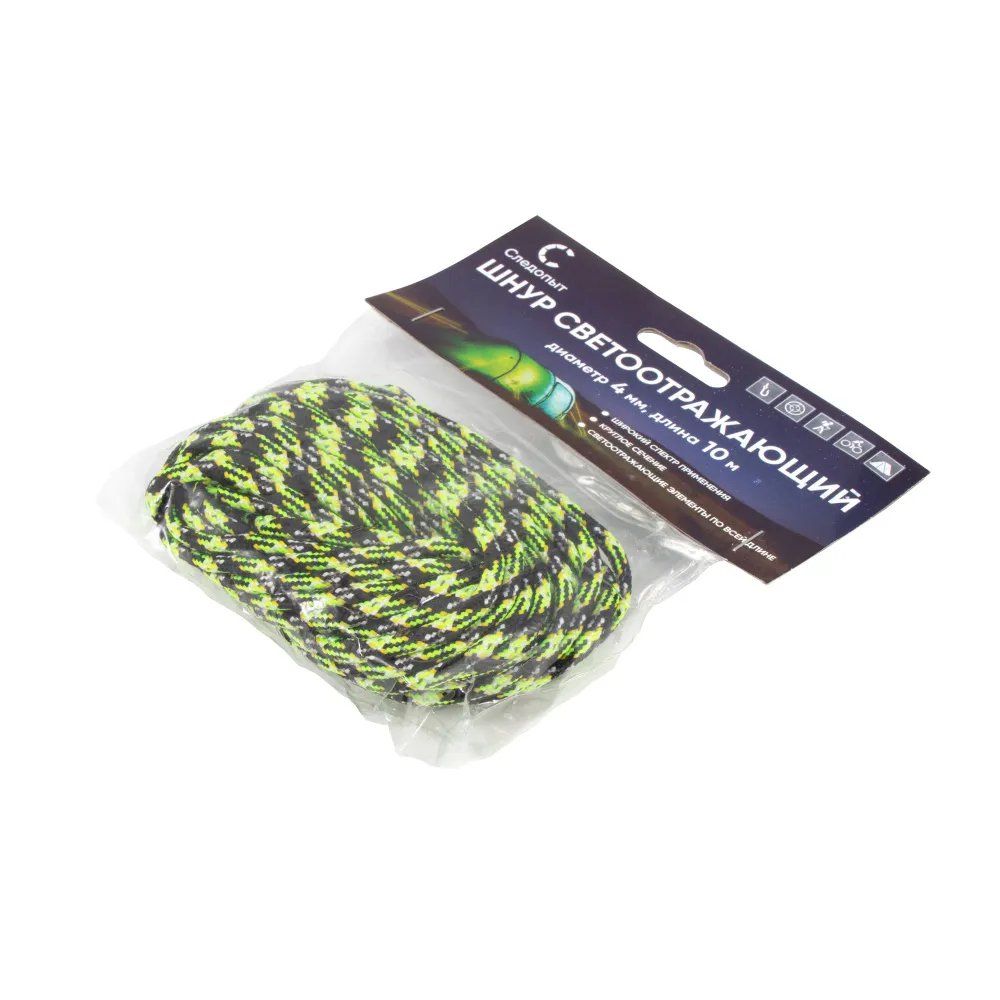 Шнур светоотражающий Следопыт (d-4 мм, L-10 м) черный/лимонный
