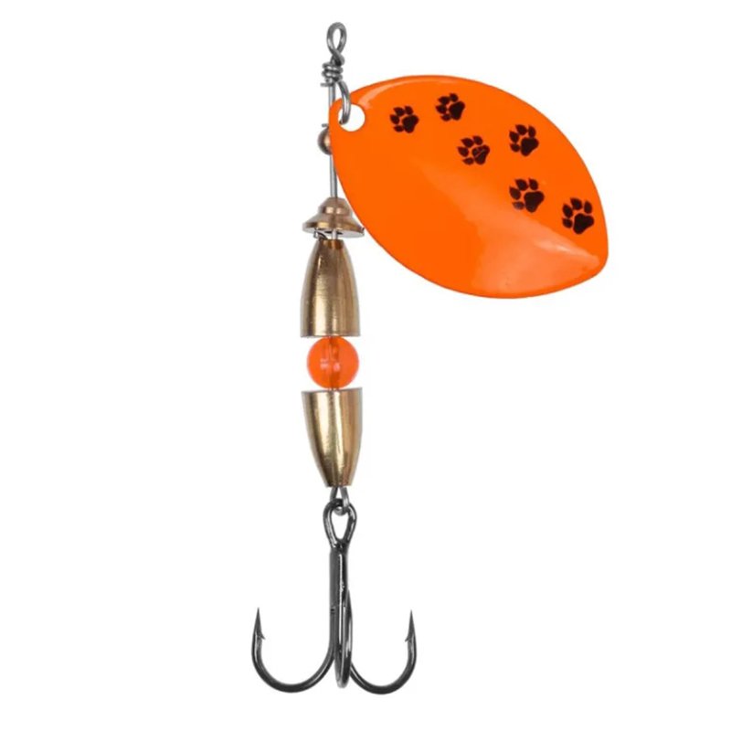 Золотой, бронзовый и серебряный цвета дополнительно покрыты мерцающим лаком, а кислотные расцветки сделаны со звериными принтом. Разделенный на две части сердечник, укомплектован бусиной по середине. Вес блесны 10 гр. Подходит для ловли щуки на слабом течении.