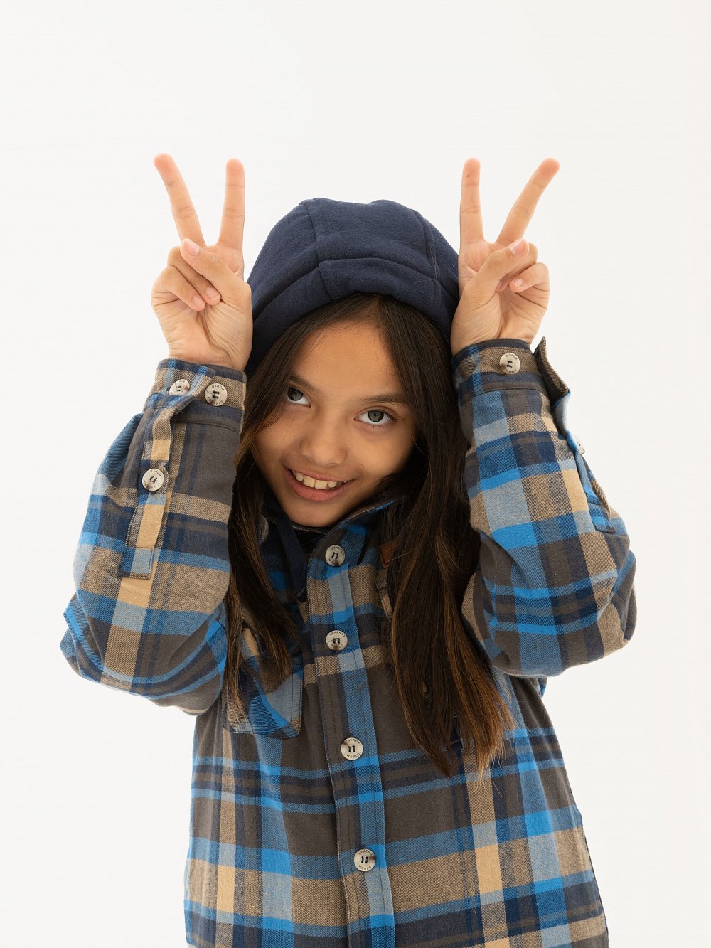 Крой рубашки свободный и не ограничивает движения. Использованный принт в виде клетки является универсальным и подходит для детей любого возраста.