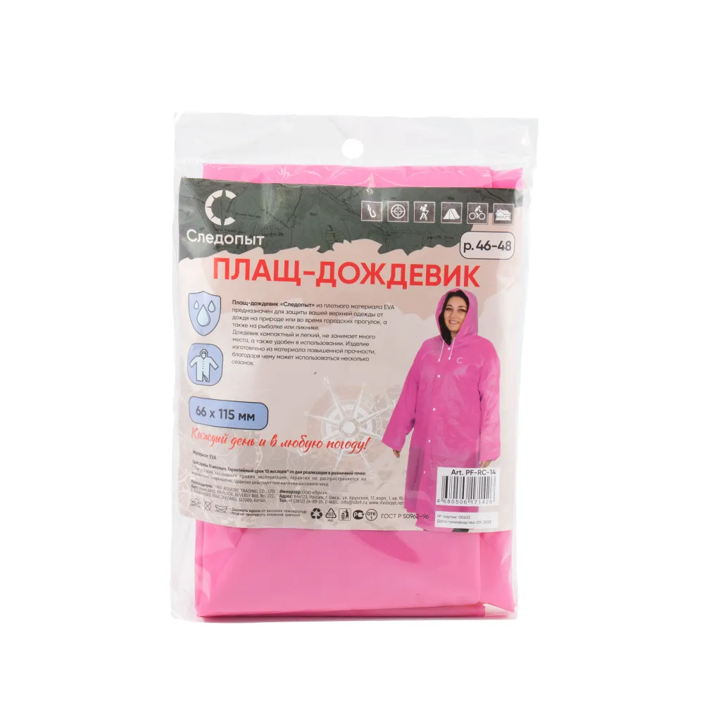 Плащ дождевик Следопыт на кнопках с капюшоном Розовый, 66х115см