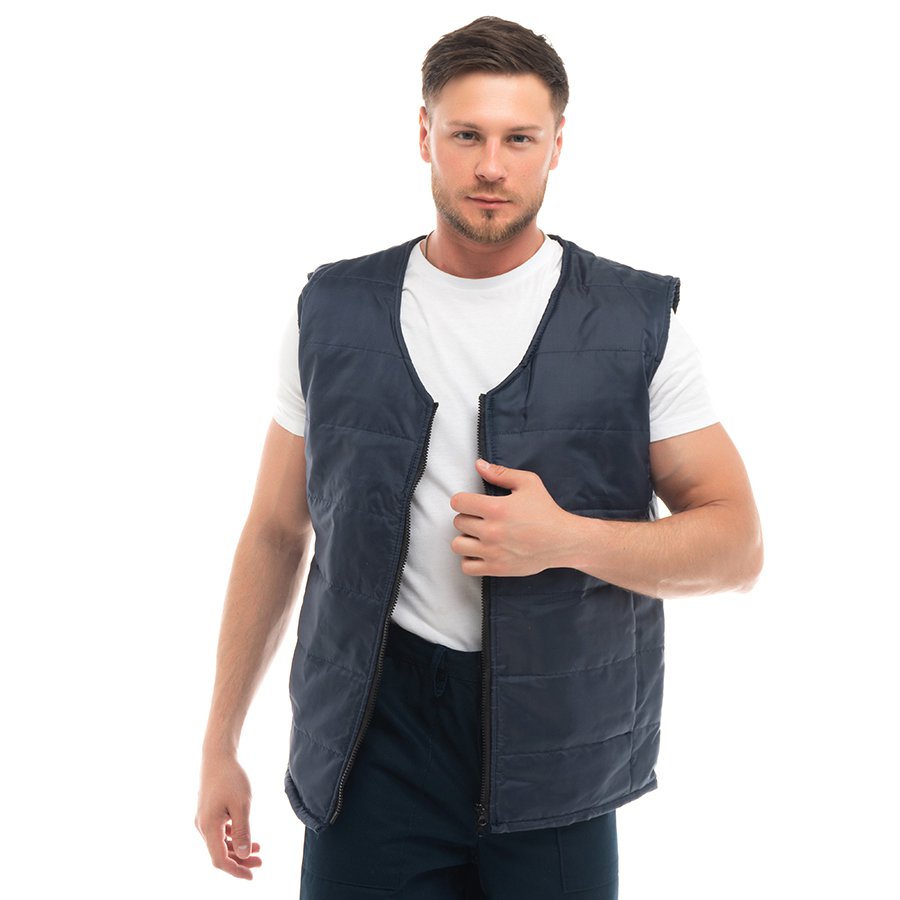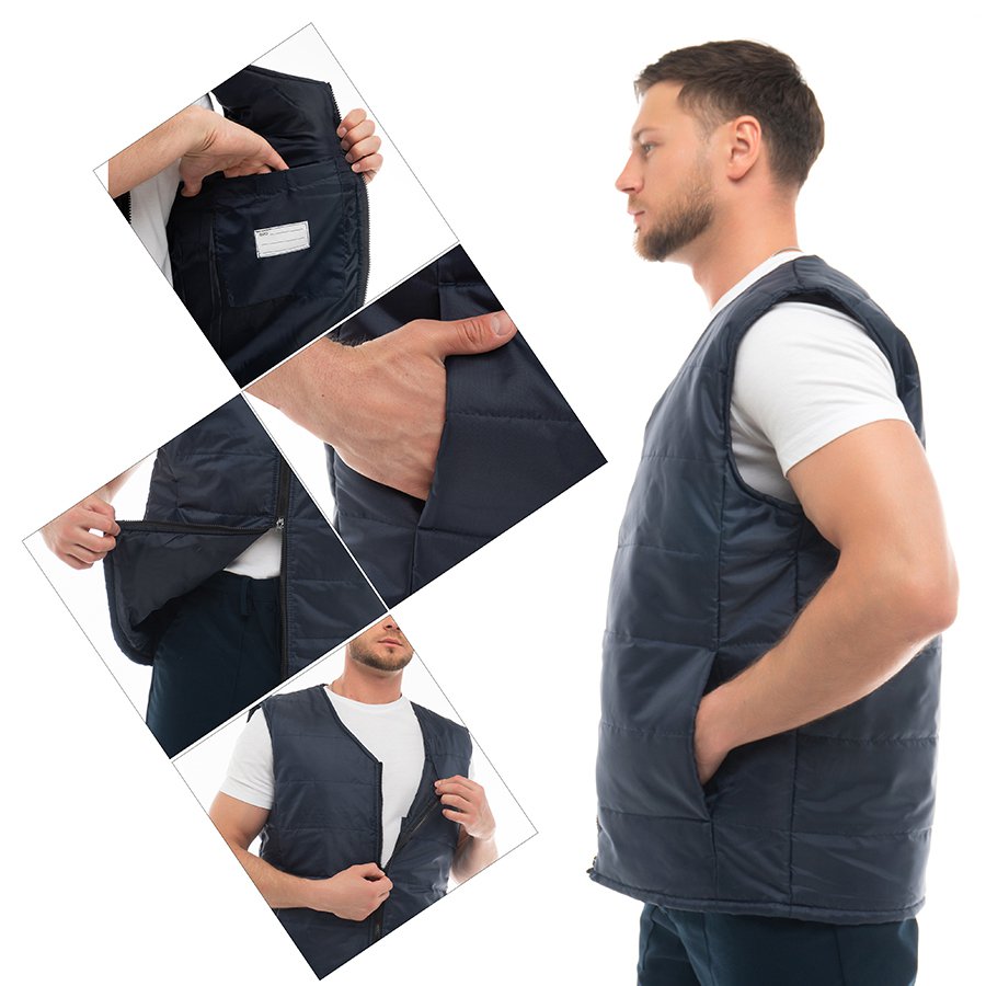 - Утепленный стеганый жилет прямого кроя подходит как мужчинам, так и женщинам.