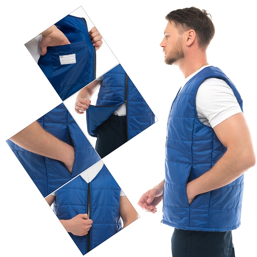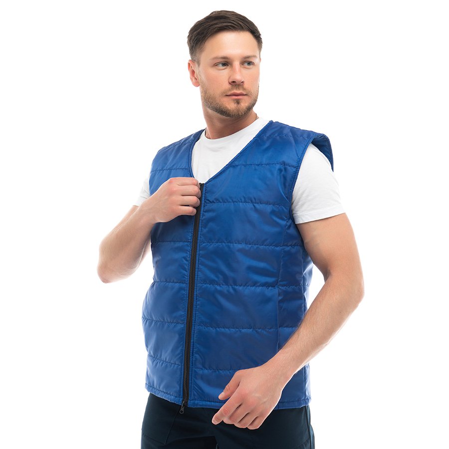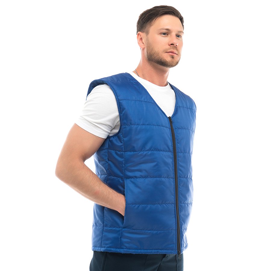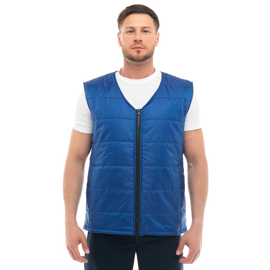 - Утепленный стеганый жилет прямого кроя подходит как мужчинам, так и женщинам.