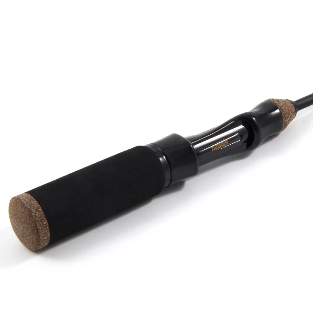 Хлыст оснащен металлическими пропускными кольцами, которые позволяют использовать все типы зимних лесок и шнуров. Рукоять изготовлена из пластика, неопрена и пробки. На ручке находится катушкодержатель с нижней гайкой. В комплект входит неопреновый чехол на молнии.