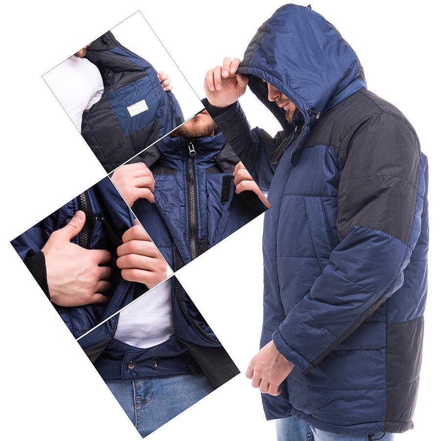 - Съемный капюшон на молнии с регулировкой объема.