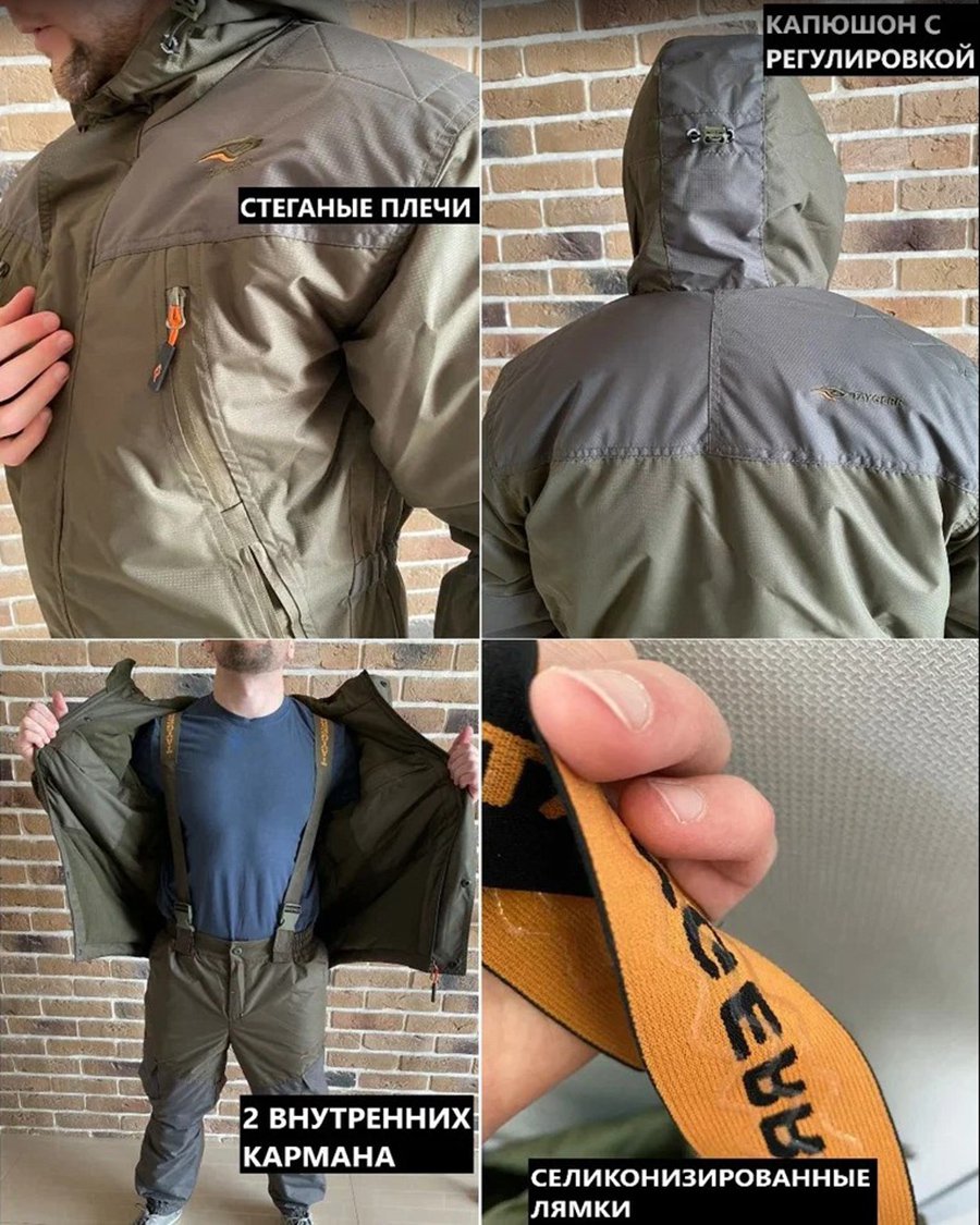 Благодаря качественной мембране, костюм обеспечит надежную защиту от осадков и ветра. А во время повышенной активности мембрана поможет отвести лишнюю влагу от тела. Изделие оснащено утеплителем Эколофт, мембраной 10000/10000, подкладом из мягкого флиса, что все в целом обеспечивает комфорт и тепло при температуре до - 15 градусов.