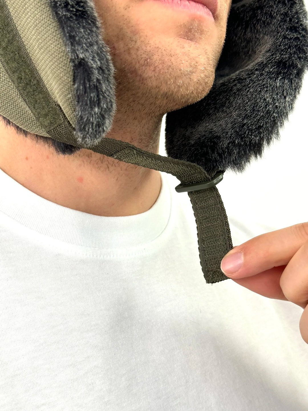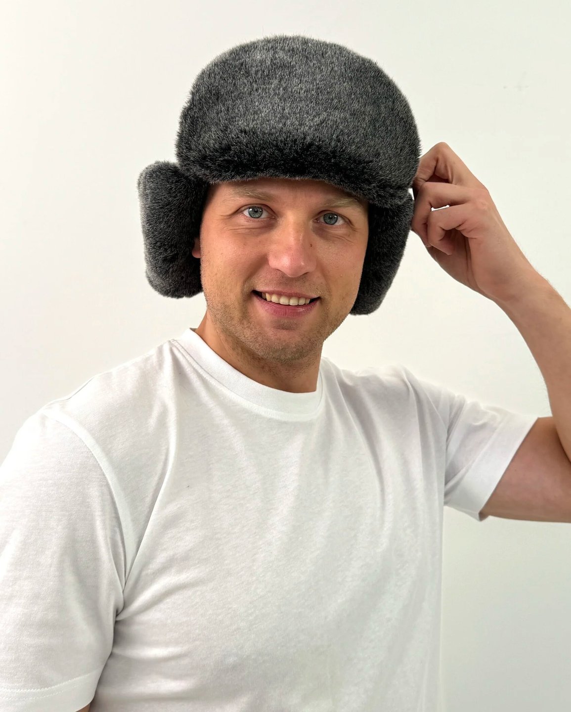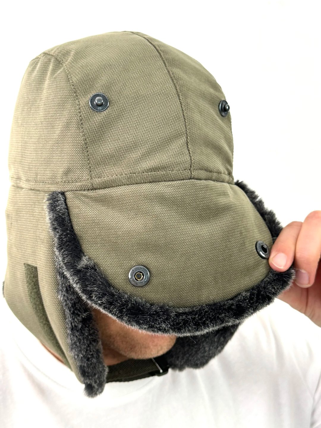 Зимняя шапка-ушанка с отделкой из искусственного меха