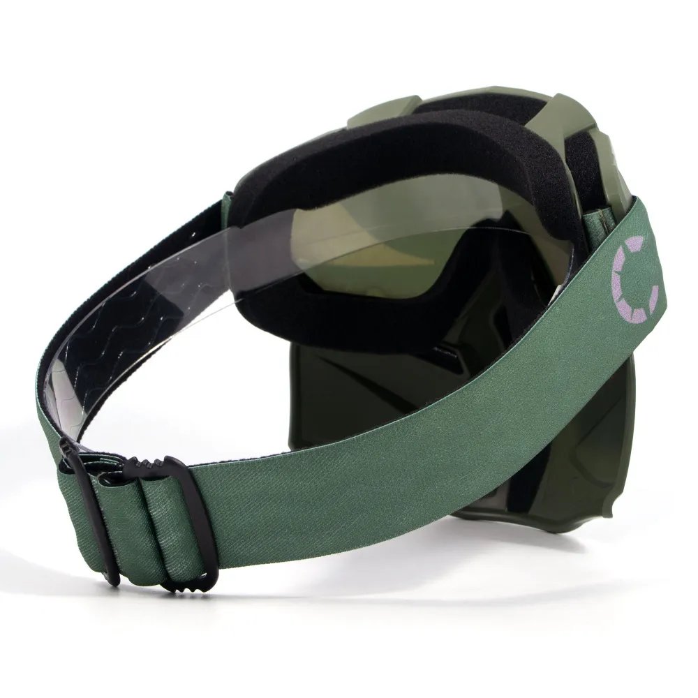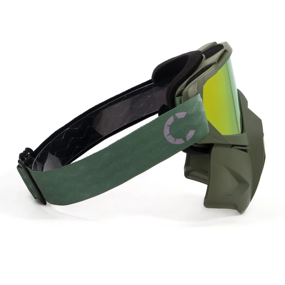 Прекрасно защищает лицо и глаза от солнечных лучей, бликов, ветра и снега. За счет своей формы и регулируемой длины резинки маска удобна в носке, и ее можно надеть поверх любого шлема.