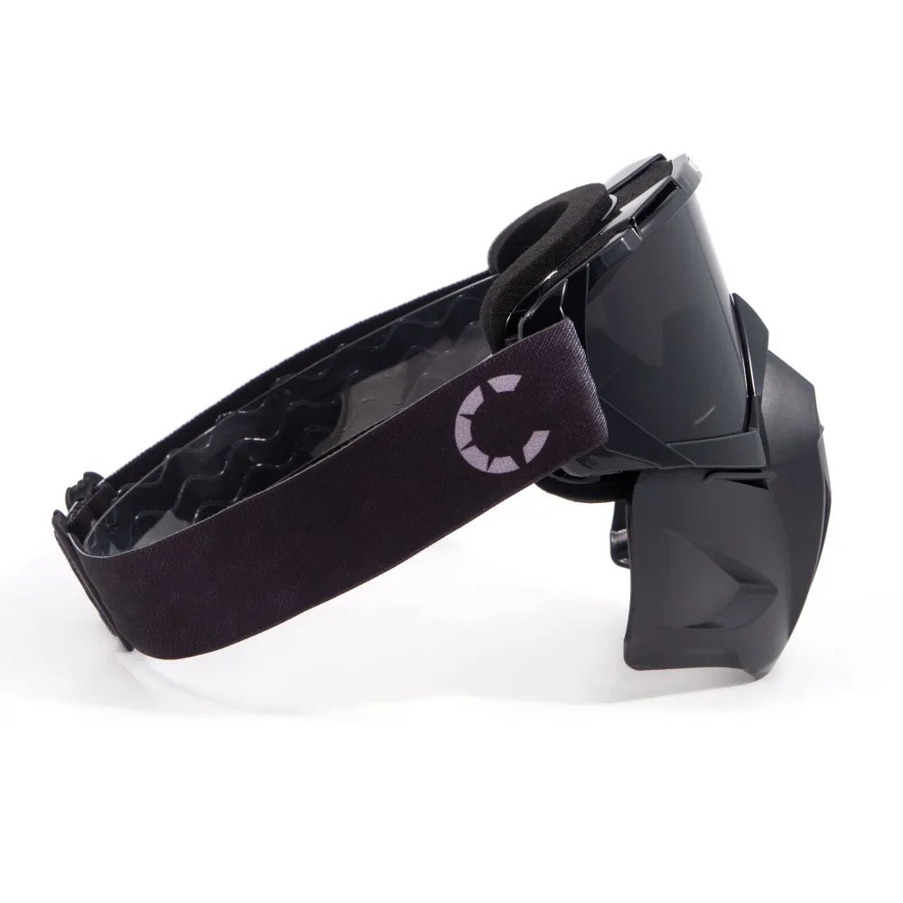 Прекрасно защищает лицо и глаза от солнечных лучей, бликов, ветра и снега. За счет своей формы и регулируемой длины резинки маска удобна в носке, и ее можно надеть поверх любого шлема.