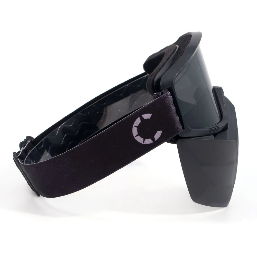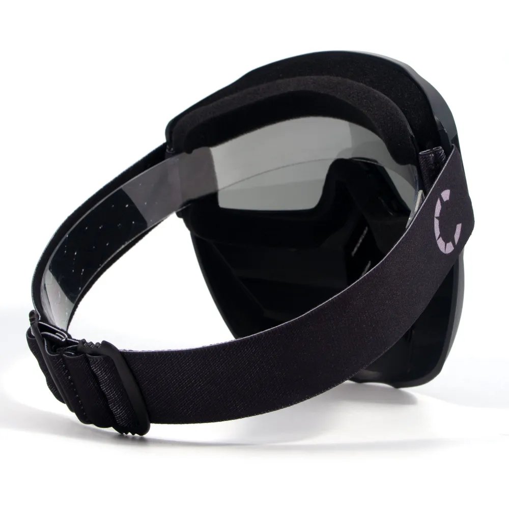 Прекрасно защищает лицо и глаза от солнечных лучей, бликов, ветра и снега. За счет своей формы и регулируемой длины резинки маска удобна в носке, и ее можно надеть поверх любого шлема.