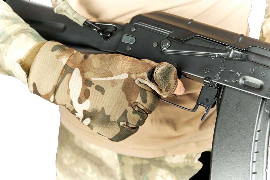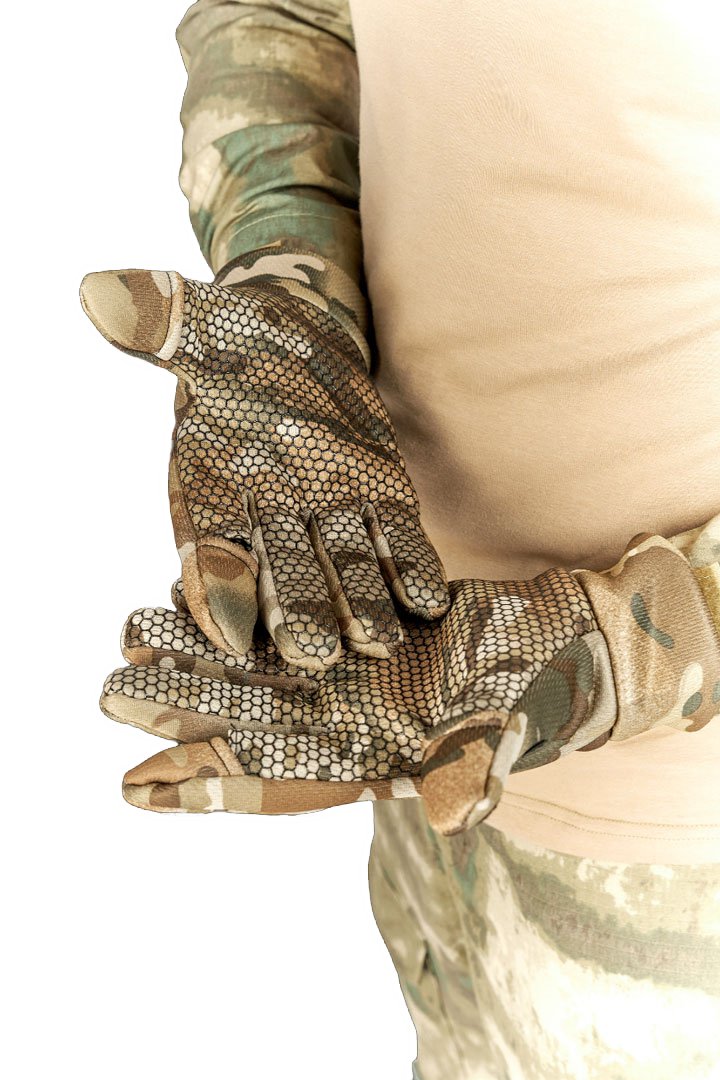 Перчатки также обладают отличной тактильной чувствительностью и предлагают полный диапазон движения для пальцев. Для дополнительного удобства на перчатках есть прорези на большом и указательном пальцах для быстрого выполнения точных и мелких операций, таких как работа с оружием, монтаж оборудования или манипуляции с предметами.