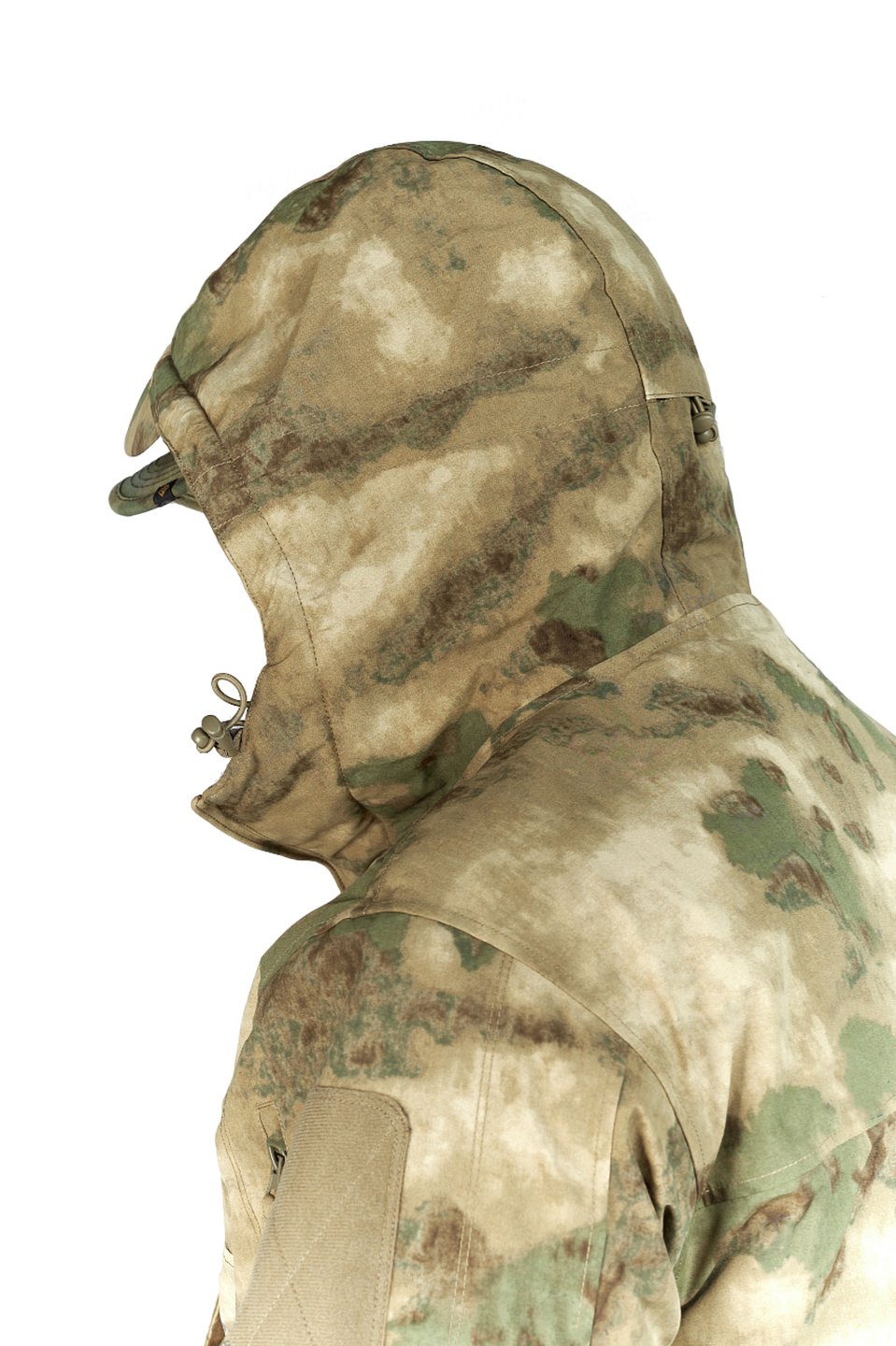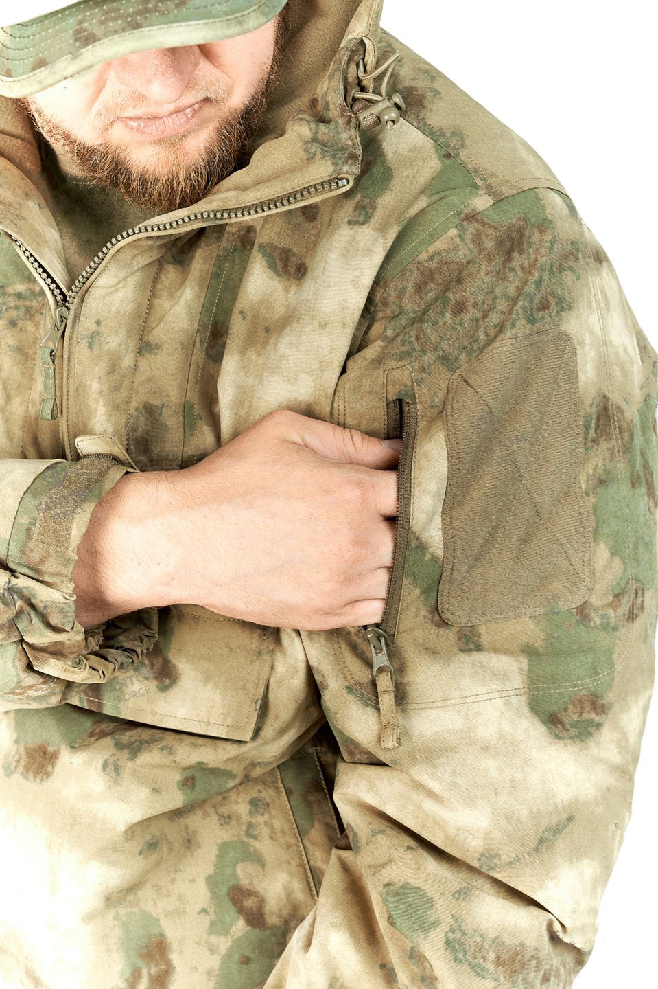 Боковые манжеты по низу куртки позволяют регулировать ширину куртки, обеспечивая идеальную посадку. Объемный нагрудный карман обеспечивает достаточное место для хранения необходимых предметов, а на каждом рукаве есть дополнительный карман для мелочей и велькро под шевроны на липучках.