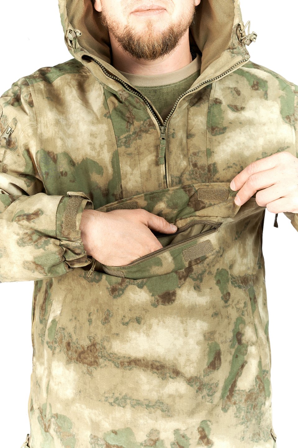 Куртка-анорак с анатомическим кроем отлично сидит на фигуре, обеспечивая максимальную свободу движений. Носится навыпуск, что позволяет быстро одеваться и снимать куртку при необходимости.