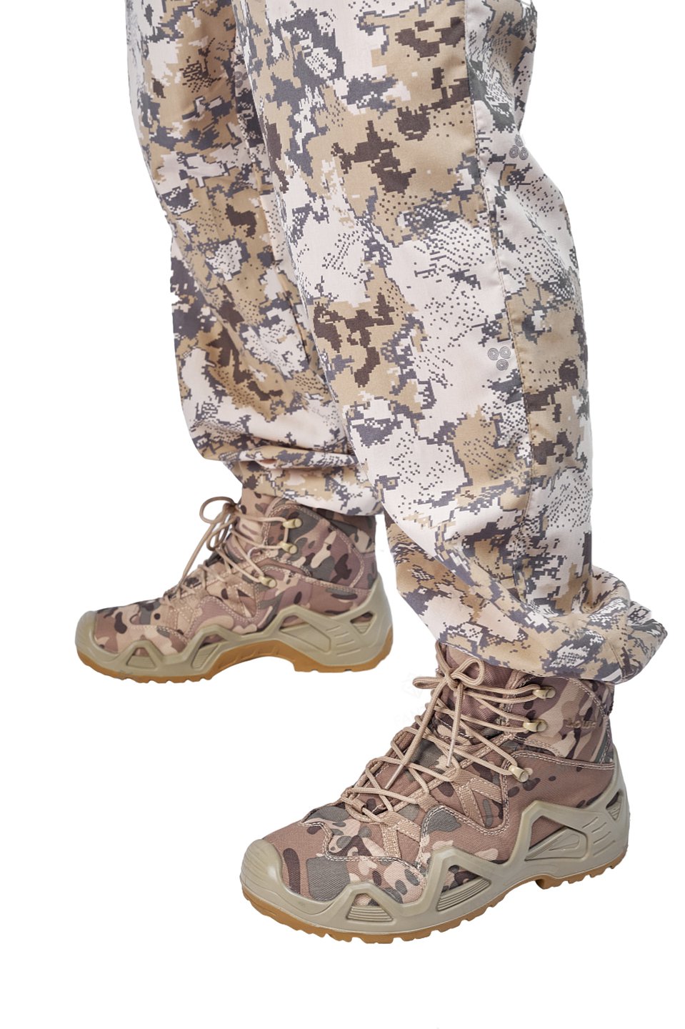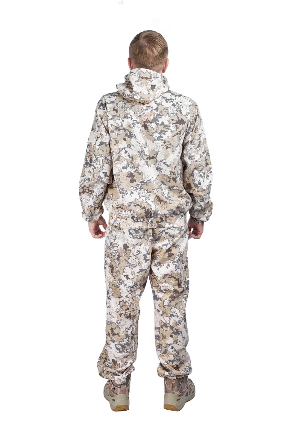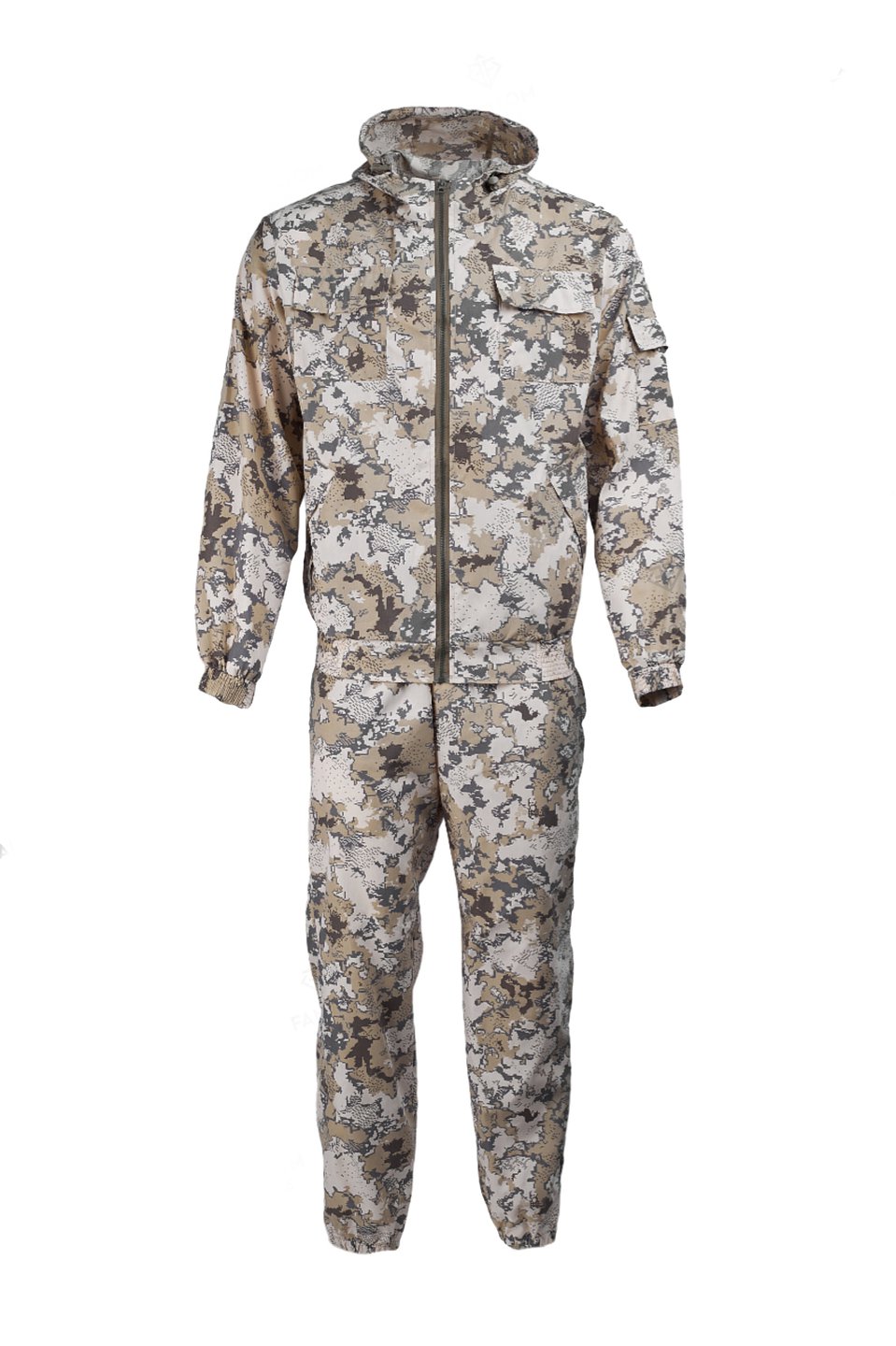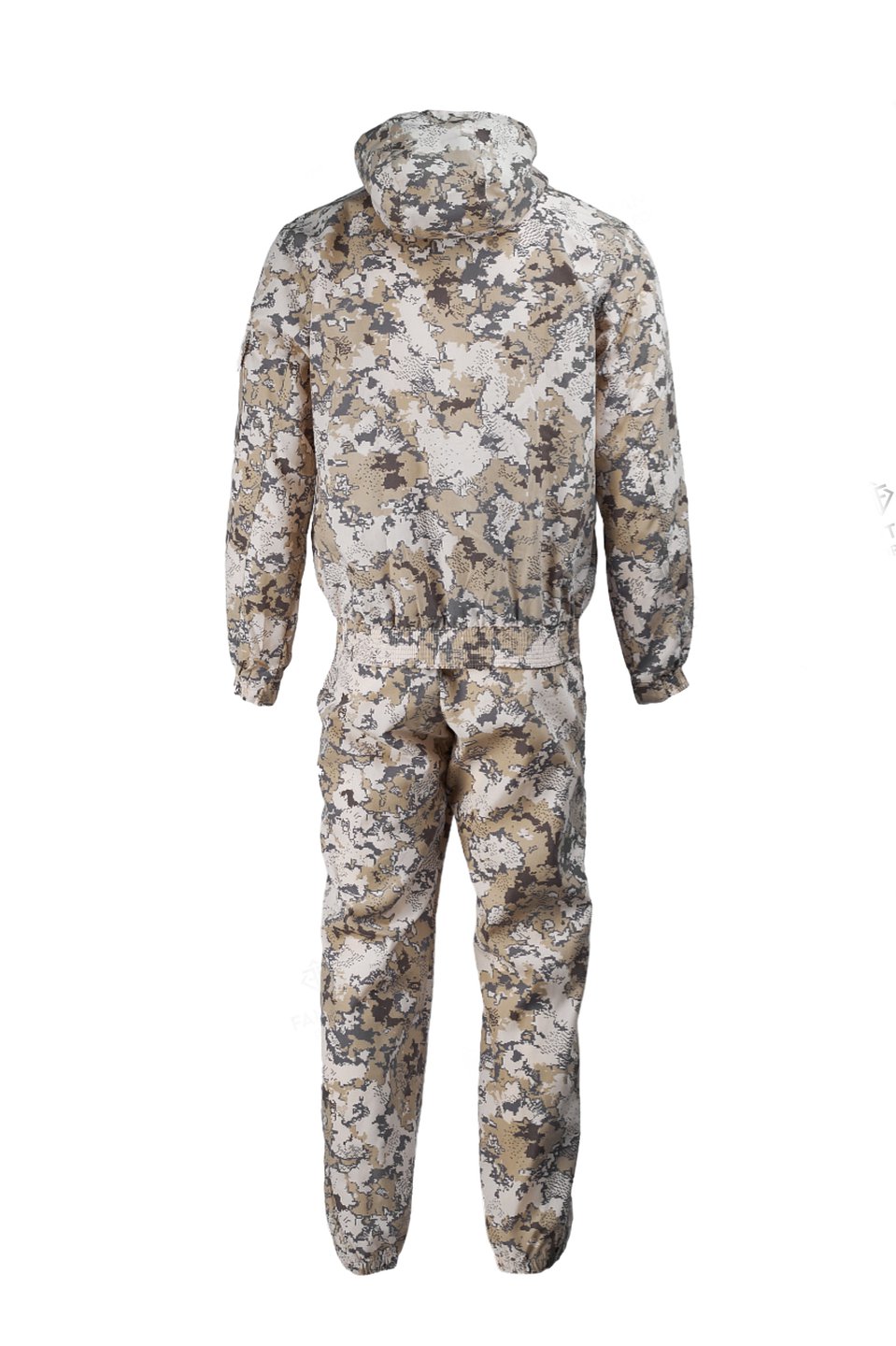 Низ куртки и рукавов обработан широкой эластичной тесьмой резинкой, что обеспечивает хорошую посадку и предотвращает проникновение холодного воздуха или насекомых. Костюм также устойчив к UF-излучению, что обеспечивает дополнительную защиту от солнечных лучей.