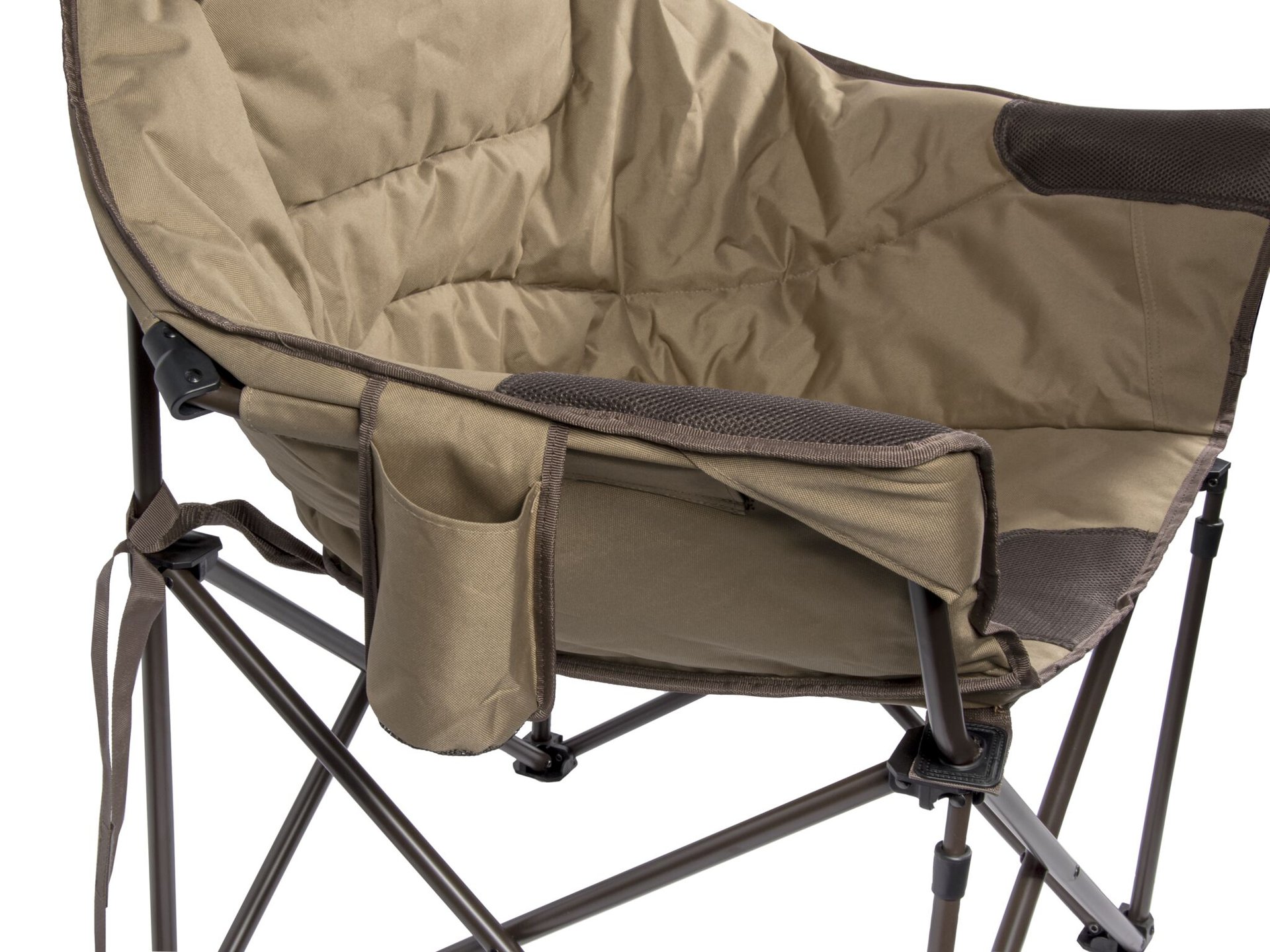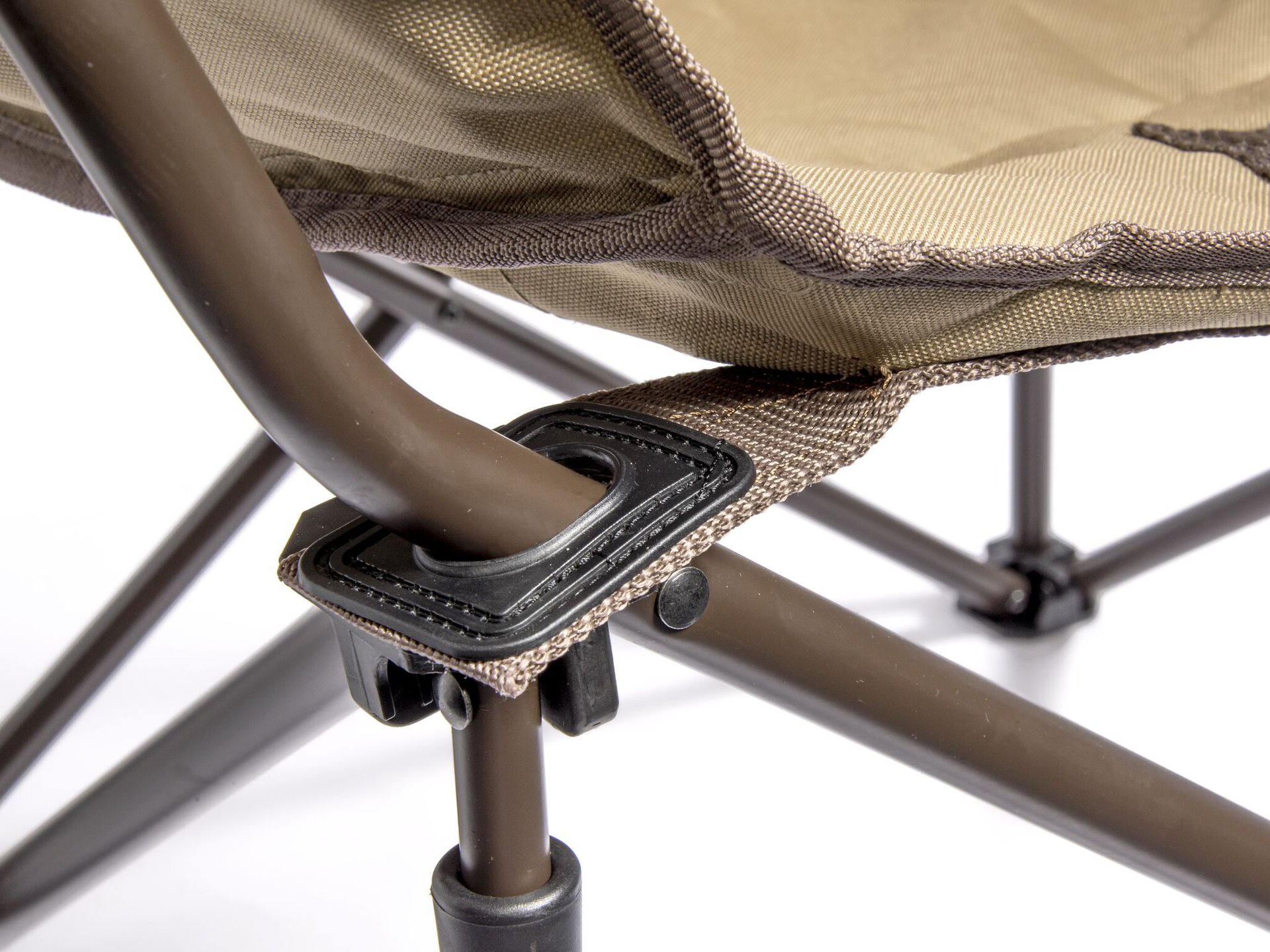Прочная конструкция, пластиковые фиксаторы на ножках делают это кресло максимально устойчивым и удобным. Сбоку имеется небольшой подвесной подстаканник.