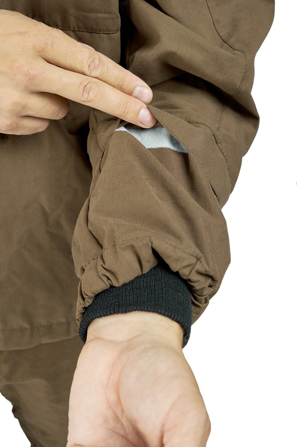 Уникальность модели заключается в том, что куртка не анорак. При этом она выполняет функции по защите от насекомых благодаря большому количеству ловушек на изделии.