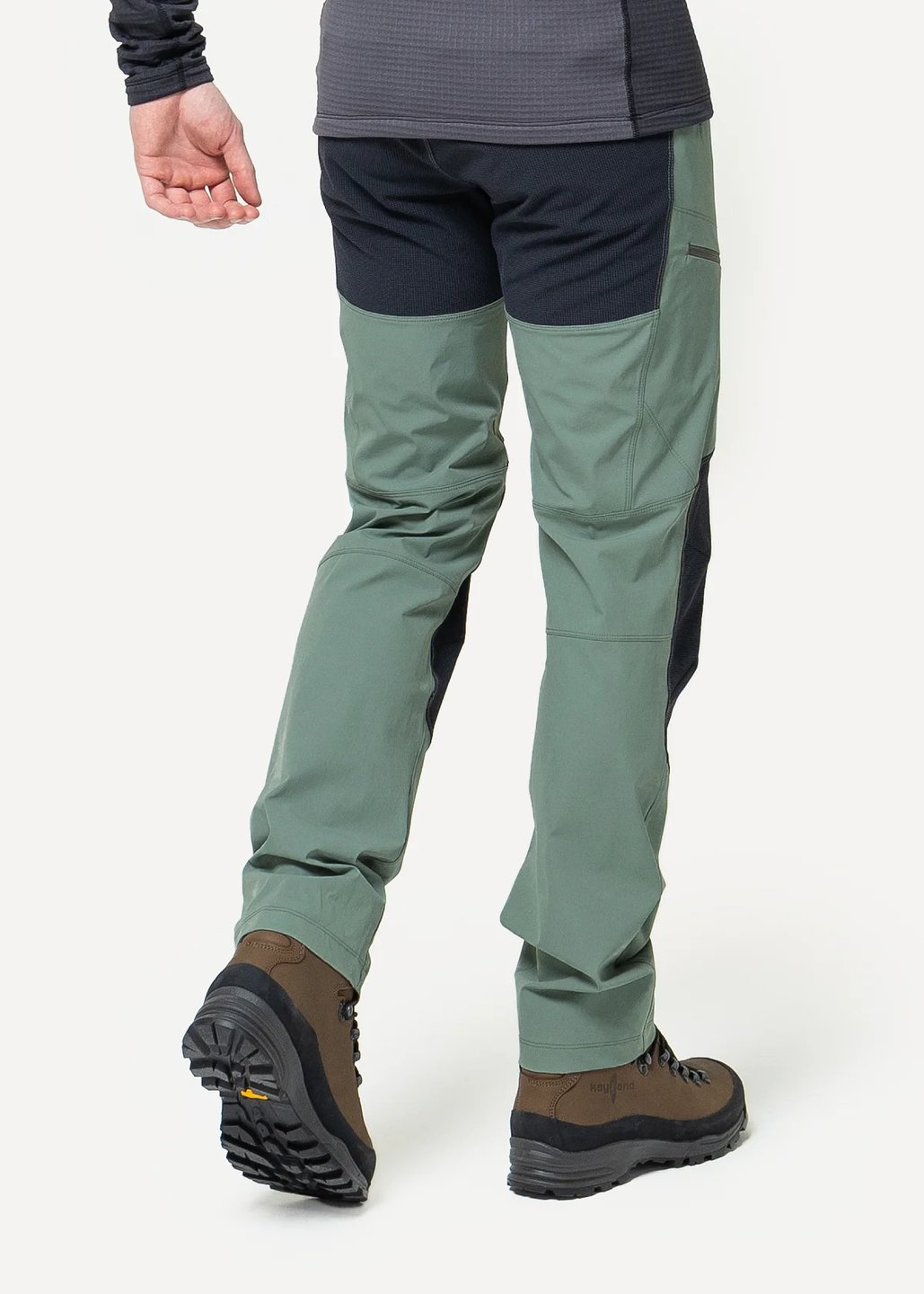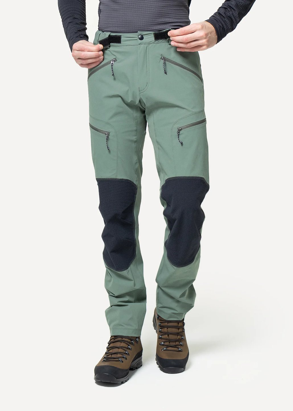 Дополнительно усиленная эластичная ткань на коленях и области сидения, полностью совместимые со страховочной системой карманы и регулируемый пояс – функциональные элементы технических штанов, полезность которых трудно переоценить.