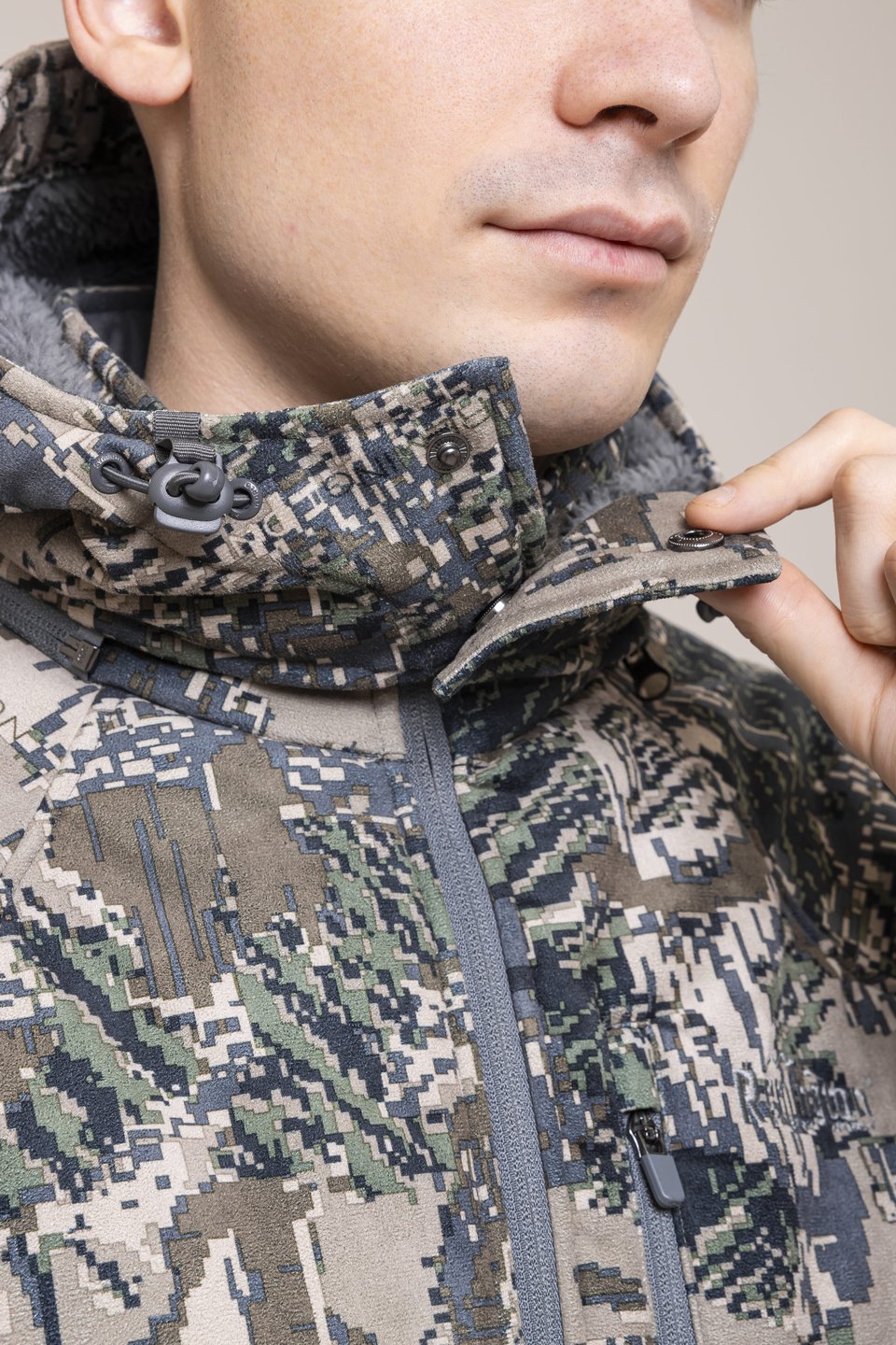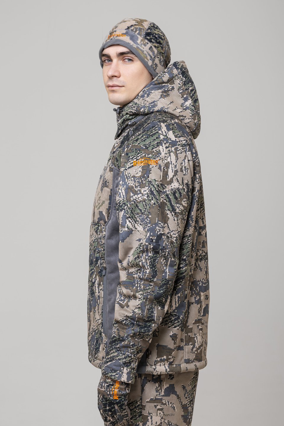 Бесшумная ткань станет превосходным вариантом для охоты. Для защиты от осадком ткань обработана DWR пропиткой.
