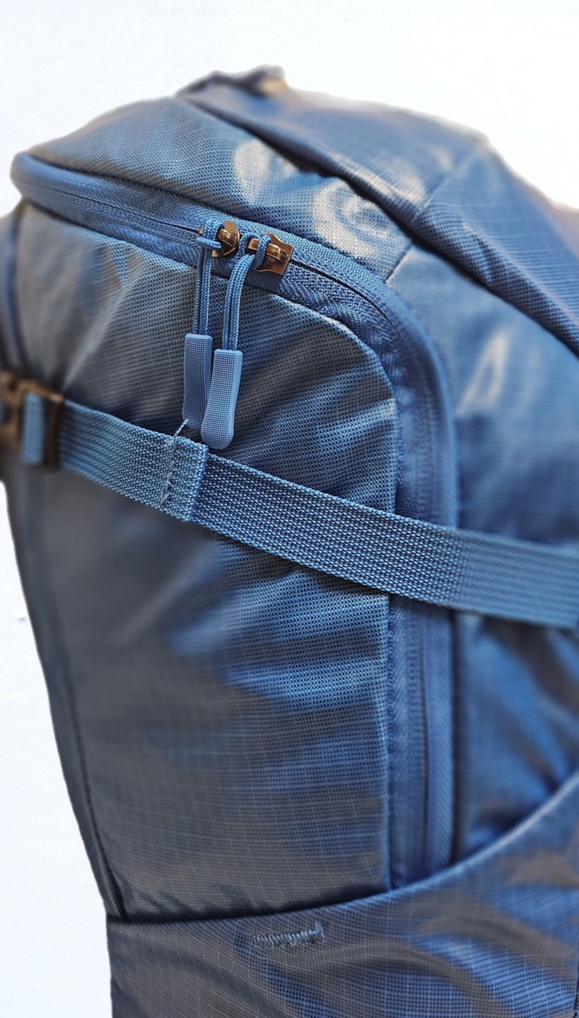 Вентилируемые лямки с резинками для крепления и фиксации снаряжения. В комплекте идет влагозащитный чехол расположенный в специальном кармане в низу рюкзака, чехол съемный.