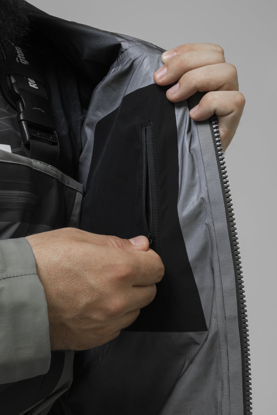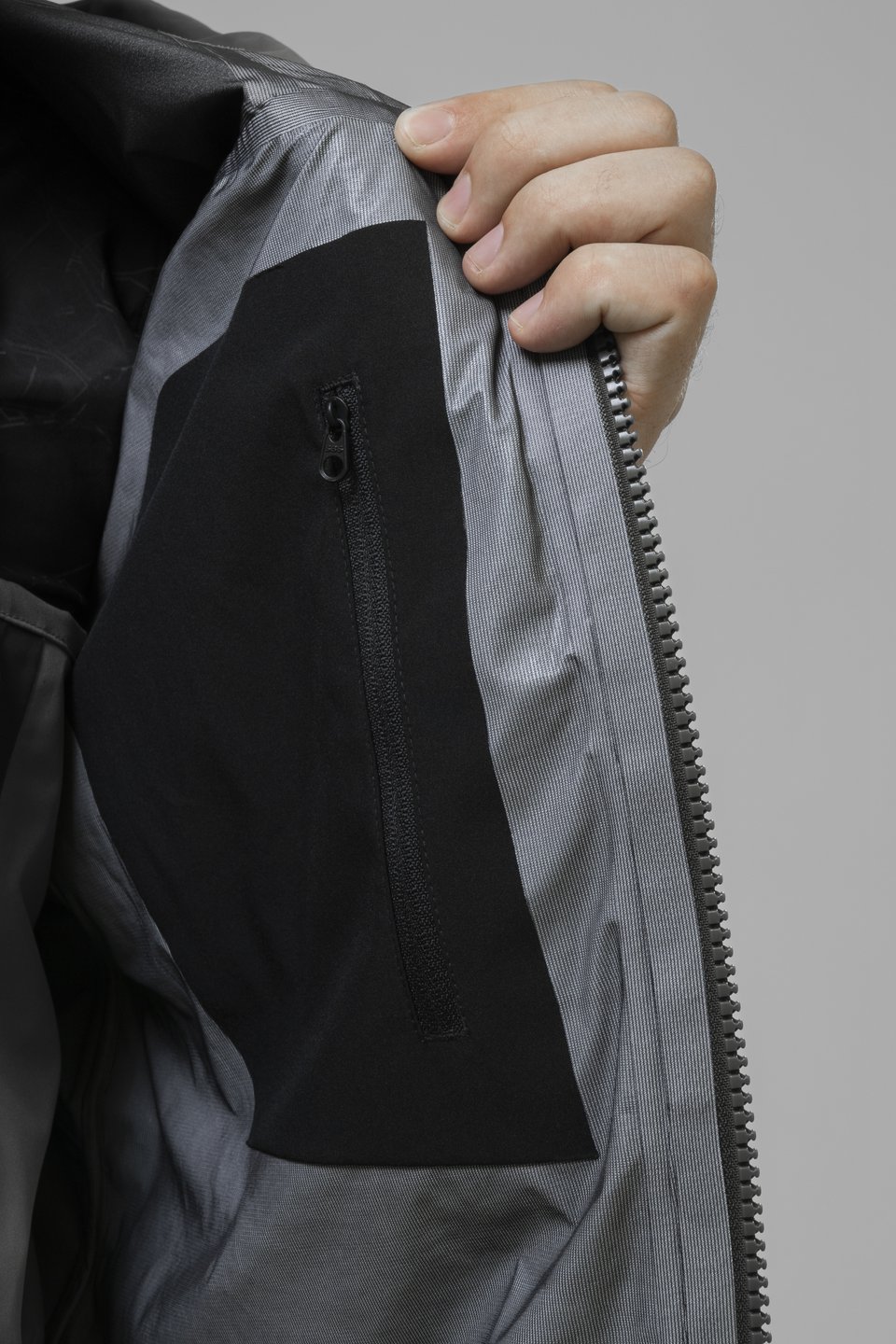 Центральная застёжка дополнена водоотталкивающим клапаном и внутренней ветрозащитной планкой.