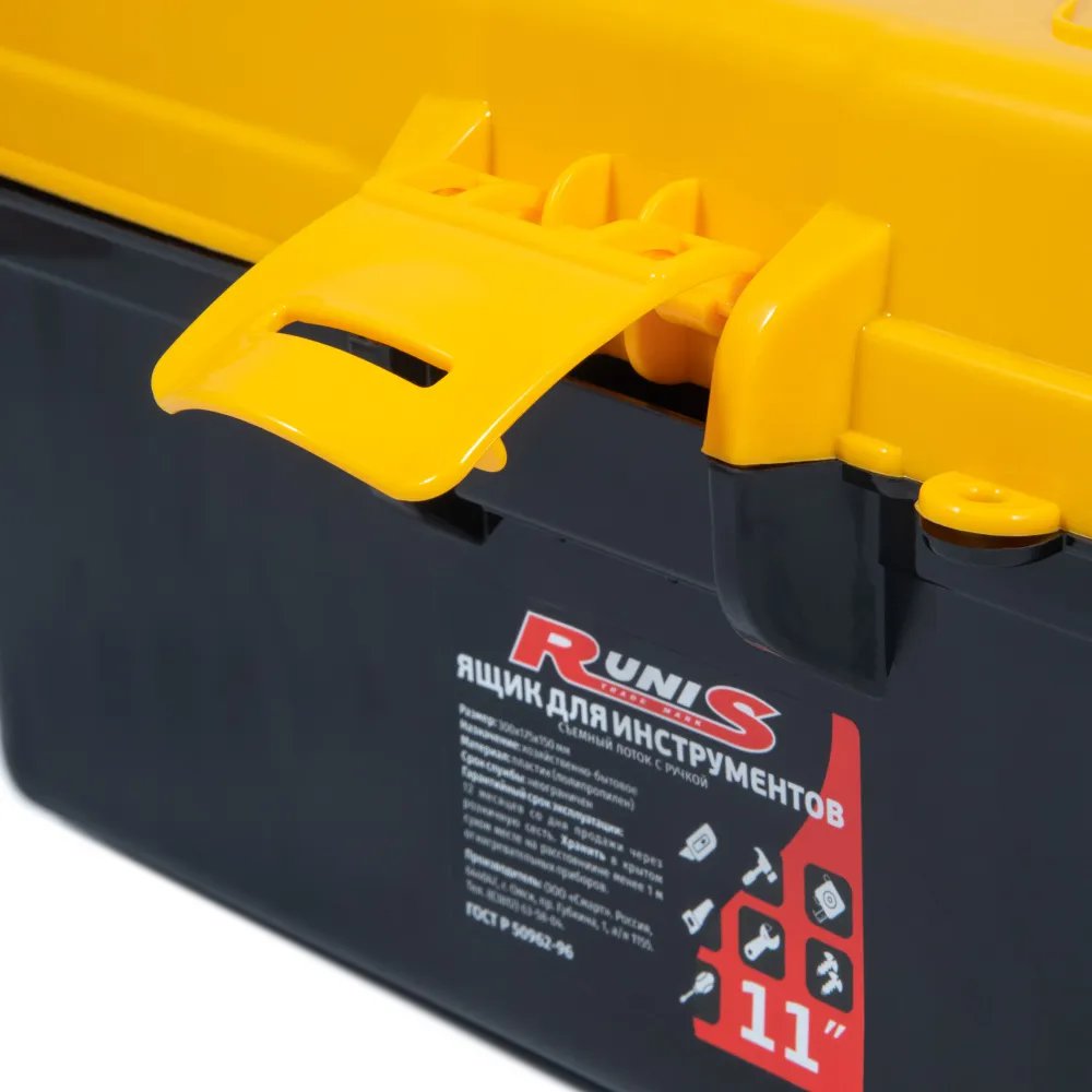 Ящик состоит из одного просторного отделения и съёмного лотка с ручкой. Предназначен для хранения основных принадлежностей и инструментов, хозяйственных мелочей. Крышка оборудована надёжной защёлкой и ручкой для переноски ящика.