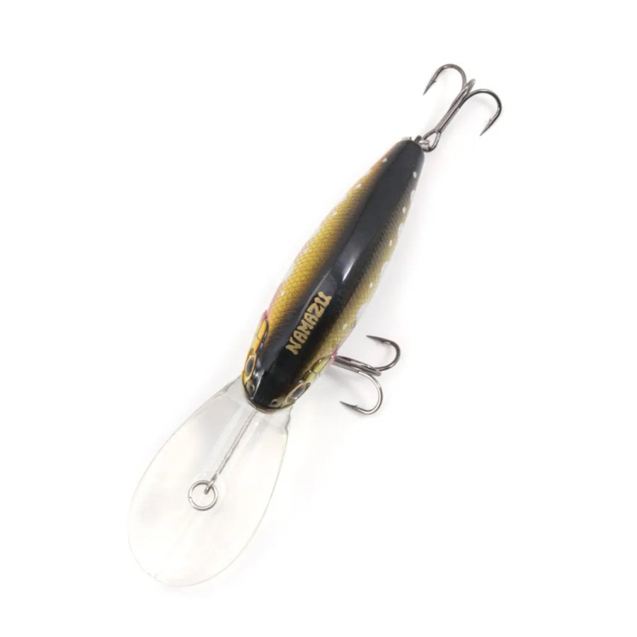 Троллинговый воблер Namazu guttatus, обладает активной размашистой игрой на любой скорости приманки. Благодаря довольно высокому и широкому телу, воблер довольно быстро всплывает, что позволяет немного приостановив проводку провести воблер в другом горизонте воды, обловив тем самым больше горизонтов в которых может находится хищник.