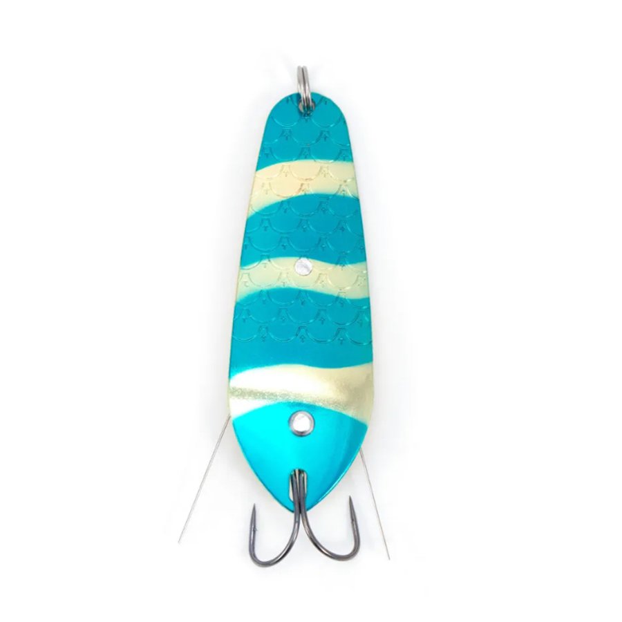 Выверенный изгиб и геометрия данной приманки позволяют колебаться с высокой амплитудой на медленных проводках. Лицевая сторона блесен почти полностью покрыта фигурным рифлением, которое напоминает чешую и имитирует живого малька. Приманки без труда растормошат пассивную, капризную рыбу.