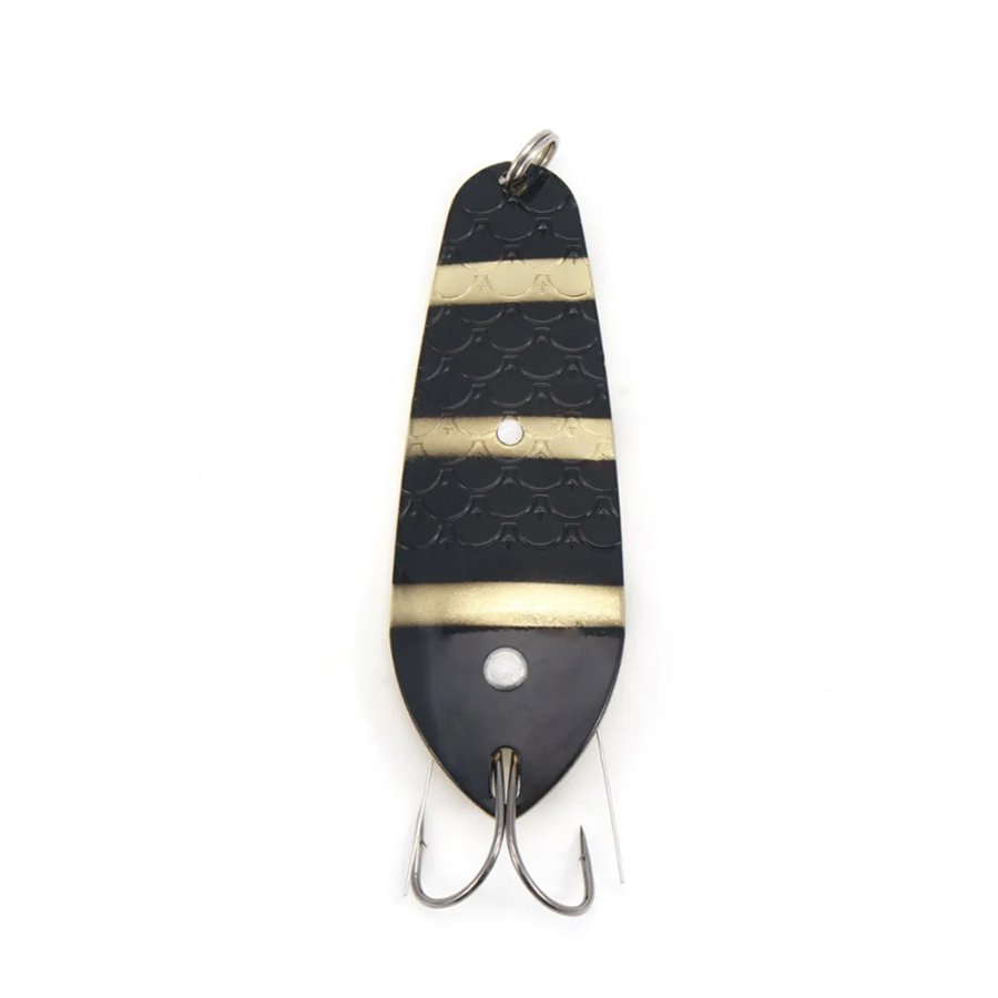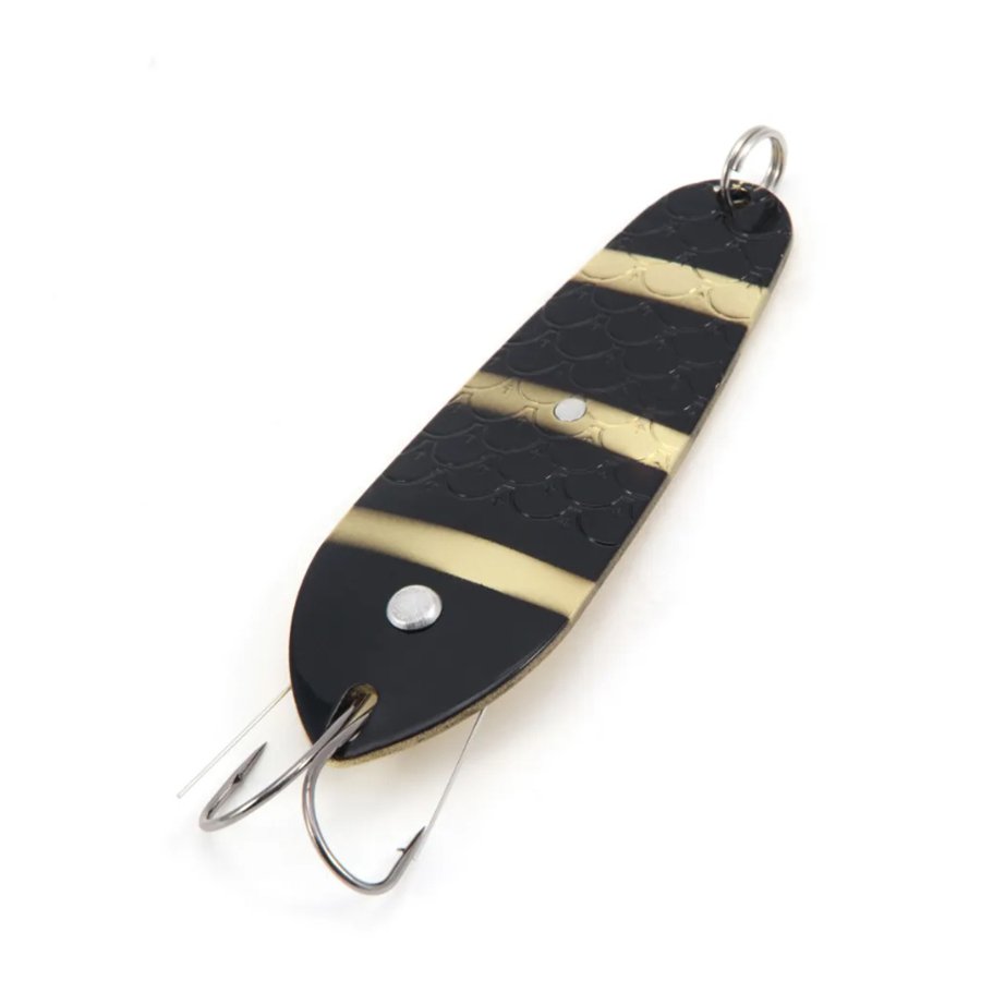 Приманка поможет обловить поросшие зоны, как в толще воды, так и у дна. Выверенный изгиб и геометрия данной приманки позволяют колебаться с высокой амплитудой на медленных проводках. Лицевая сторона блесен почти полностью покрыта фигурным рифлением, которое напоминает чешую и имитирует живого малька. Приманки без труда растормошат пассивную, капризную рыбу.