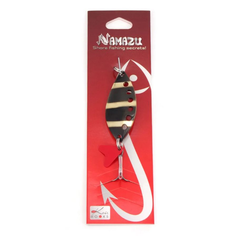 Главная особенность серии - 7 сквозных отверстий вдоль одного края. Они пропускают через себя при движении воду, усиливая гидроакустические вибрации. Рыба почувствует Namazu Long Hole издали. Поддразнит потенциальную добычу своими колебаниями и яркий маленький лепесток. Он закреплен на одном колечке с тройником и провоцирует хищника атаковать именно крючок. Приманка подойдет для ловли зубастой щуки и окуня.