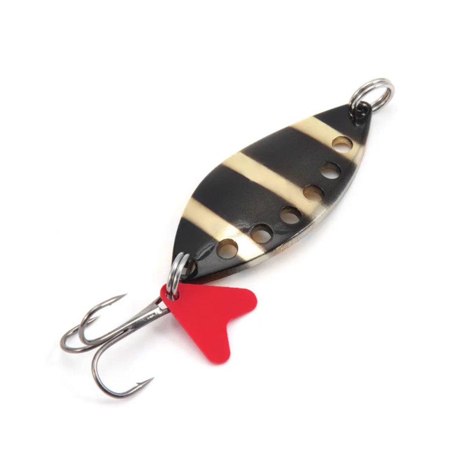 Колеблющаяся блесна с яркой широкой пластиной и сквозными отверстиями для усиления гидроакустических вибраций