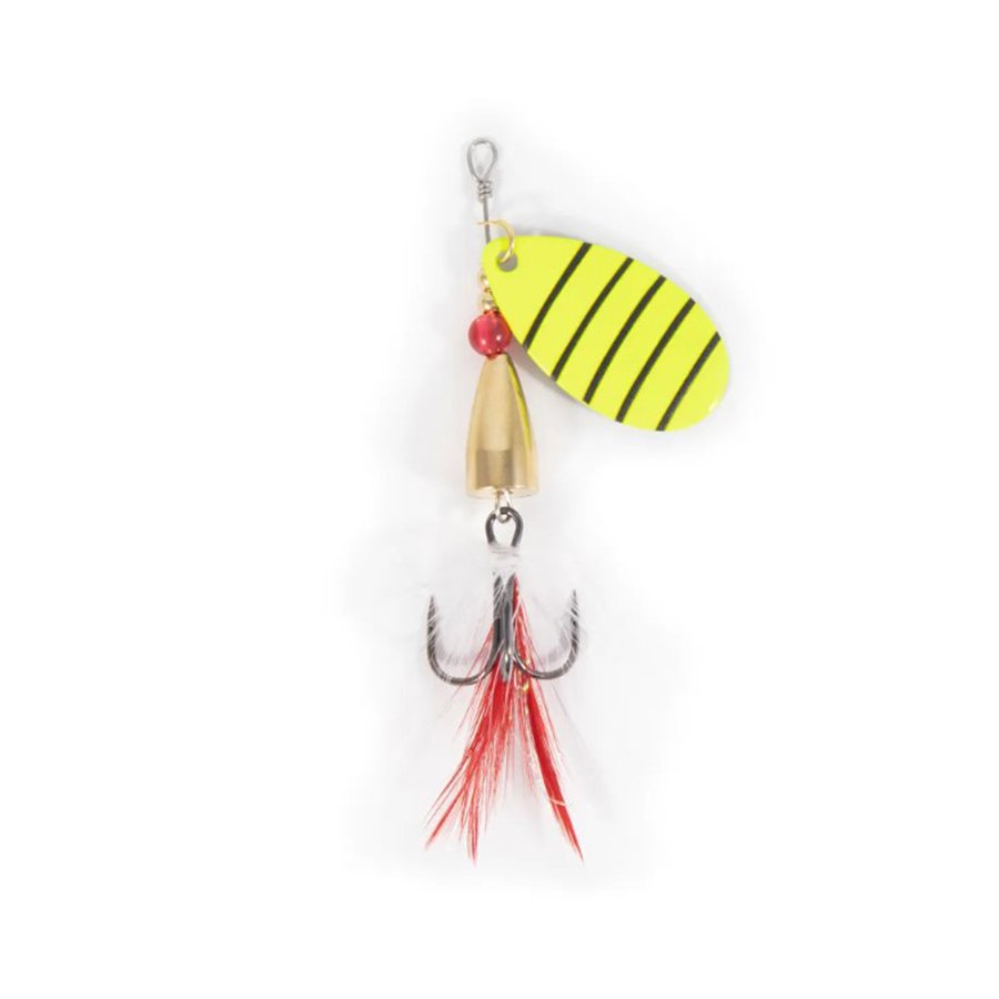У данной модели пулевидный сердечник, он стабилизирует блесну в воде и способствует улучшению кастинговых показателей. "Изюминку" в игру вносят колебания оперения, которое маскирует тройник. Дразнящий элемент будет провоцировать хищника атаковать именно крючок.