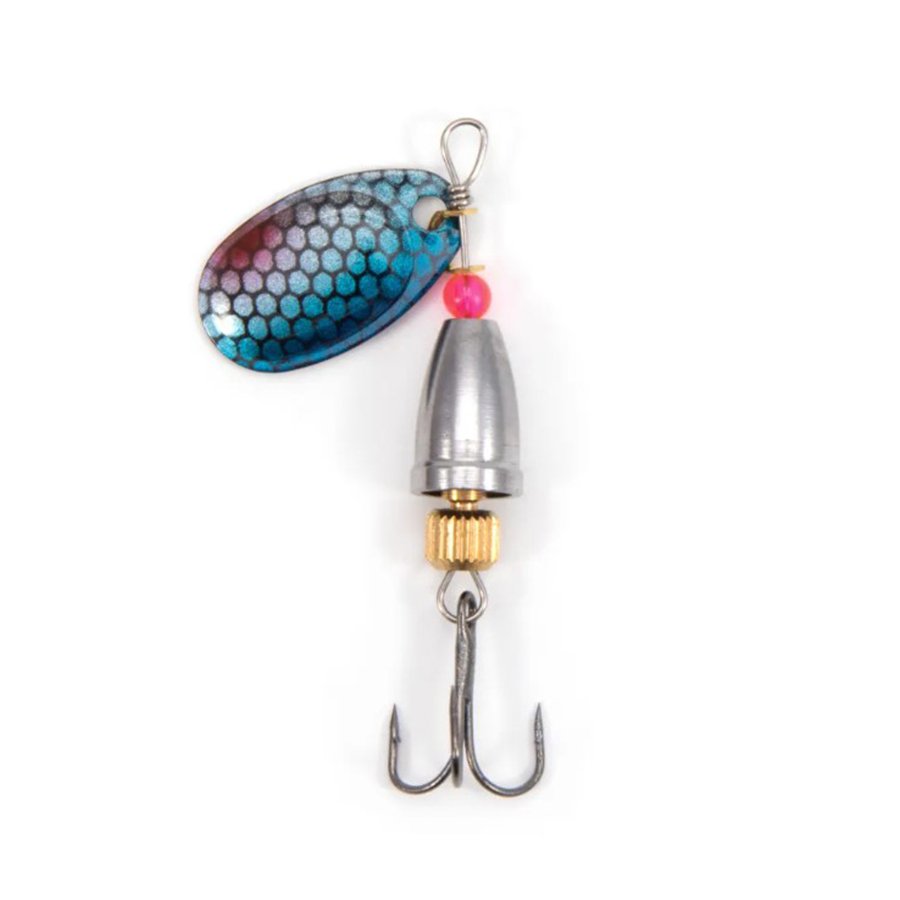 Блесна вращающаяся Namazu «Lothar» - одна из универсальных и популярных спиннинговых приманок. Имеет длинный узкий лепесток формы long, похожий на листик ивы, при вращении дающий угол отклонения от оси 30 градусов. Такой угол и форма гарантируют низкую частоту вращения лепестка, что хорошо работает при медленной проводке на быстром течении и придонной ловле.