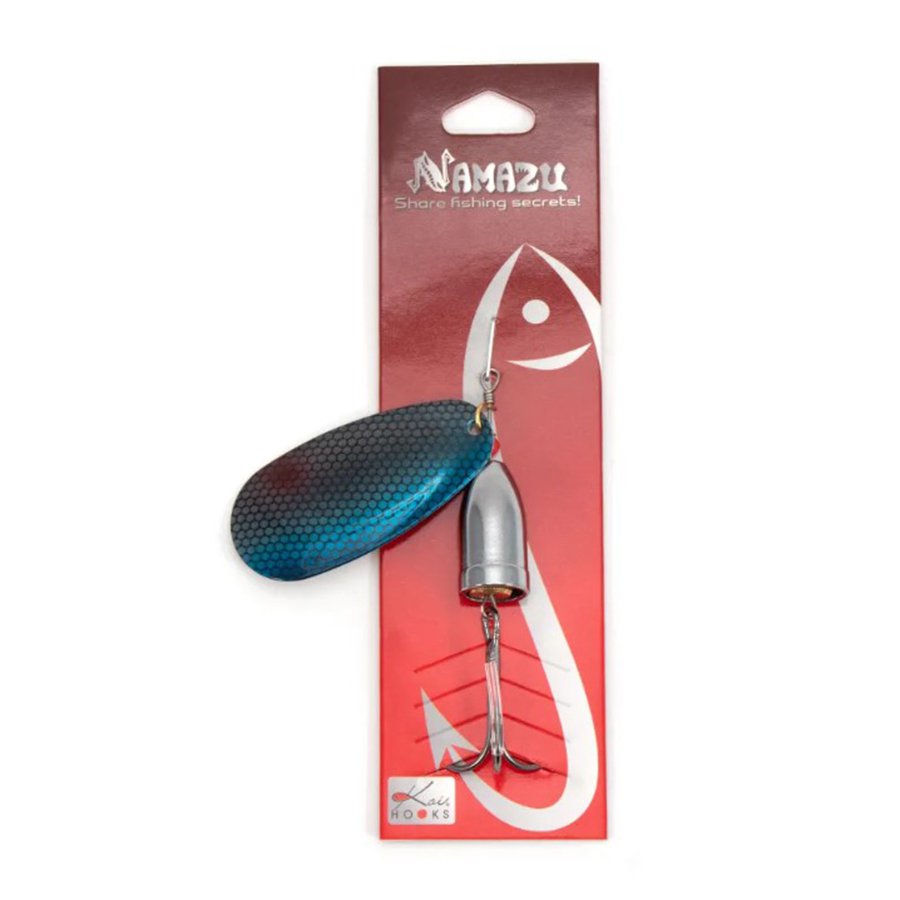 Блесна вращающаяся Namazu «Lothar» - одна из универсальных и популярных спиннинговых приманок. Имеет длинный узкий лепесток формы long, похожий на листик ивы, при вращении дающий угол отклонения от оси 30 градусов. Такой угол и форма гарантируют низкую частоту вращения лепестка, что хорошо работает при медленной проводке на быстром течении и придонной ловле.
