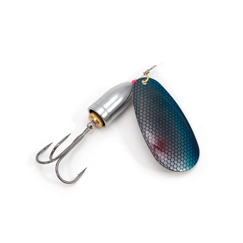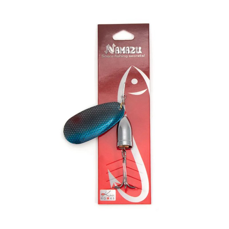 Блесна вращающаяся Namazu «Lothar» - одна из универсальных и популярных спиннинговых приманок. Имеет длинный узкий лепесток формы long, похожий на листик ивы, при вращении дающий угол отклонения от оси 30 градусов. Такой угол и форма гарантируют низкую частоту вращения лепестка, что хорошо работает при медленной проводке на быстром течении и придонной ловле.