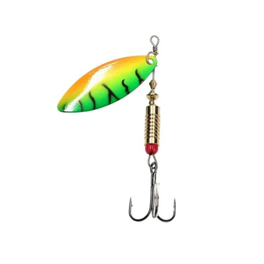 Блесна «Alleria» - это модель с металлическим стержнем, вокруг которого вращается вытянутый, металлический лепесток формы long с углом отклонения от оси 30 градусов. Лепесток создает шумы под водой, что приманивает рыбу. Под лепестком находится сердечник с яркой бусинкой -дополнительной «точкой атаки» для хищной рыбы и тройной крючок. Эти характеристики обеспечивает точность заброса и хороший улов при медленной проводке на течении и придонной ловле. Применяется для ловли практически любого хищника.