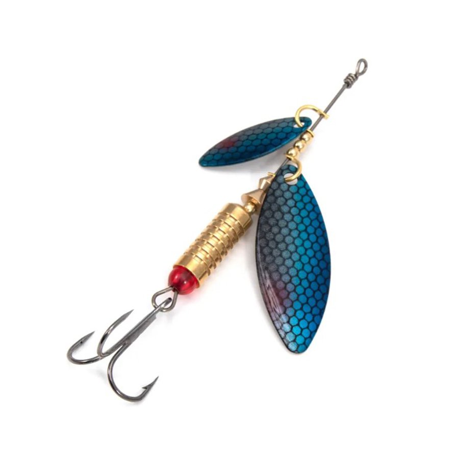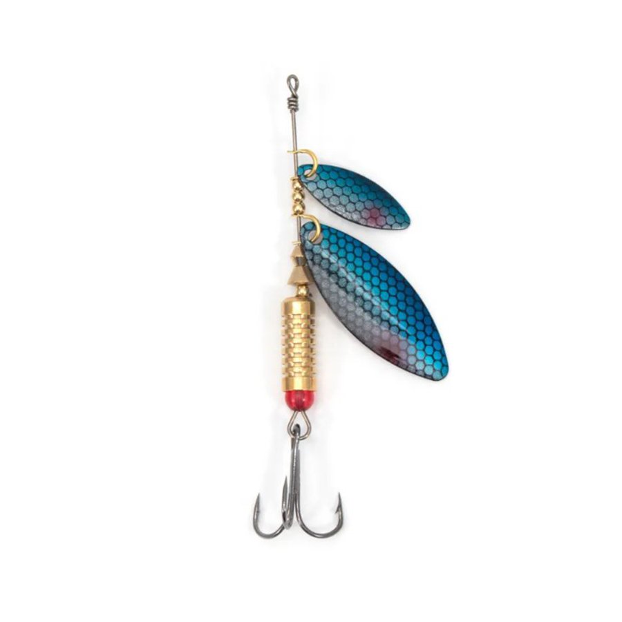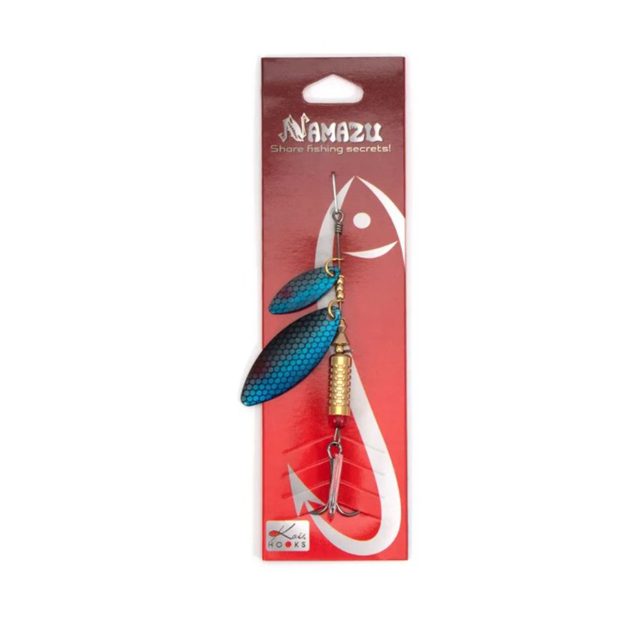 Главный элемент блесен Namazu «Ahimonda» – два узких, вытянутых вращающихся лепестка, начинающие свою работу, сразу как блесна начинает движение. Удвоенное количество лепестков обеспечивает дополнительные сигналы, что повышает интерес к блесне даже хитрой рыбы.