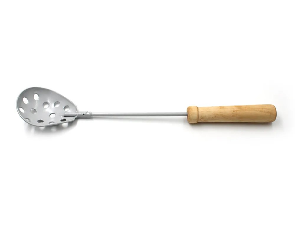 Ложка черпака изготовлена из стали, дополнительно окрашена полимерной порошковой краской. Ручка черпака изготовлена из березы, покрыта специальным защитно-декоративным составом и имеет удобную форму, предотвращающую выскальзывание черпака из рук. Прочность и надежность конструкции обеспечивает длительный срок службы черпака.