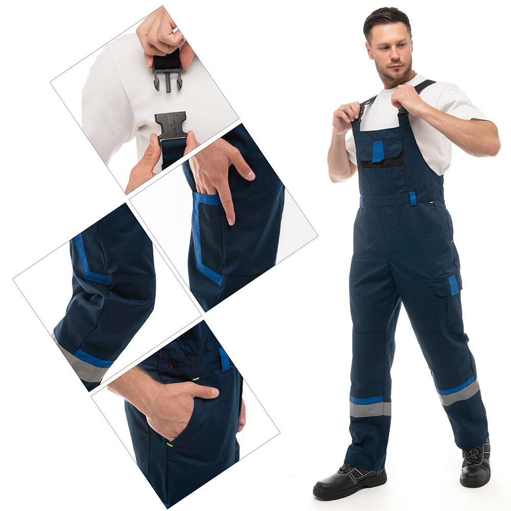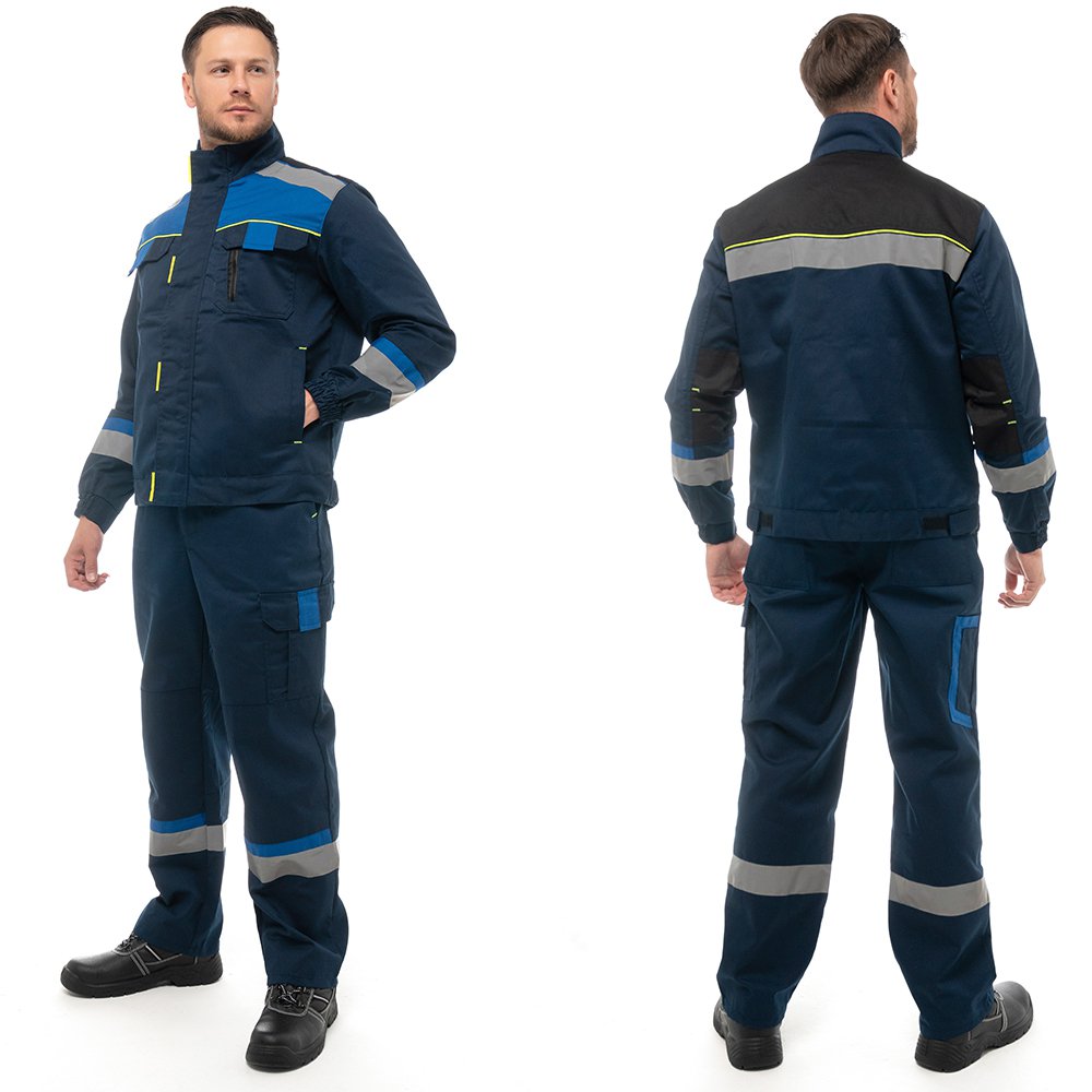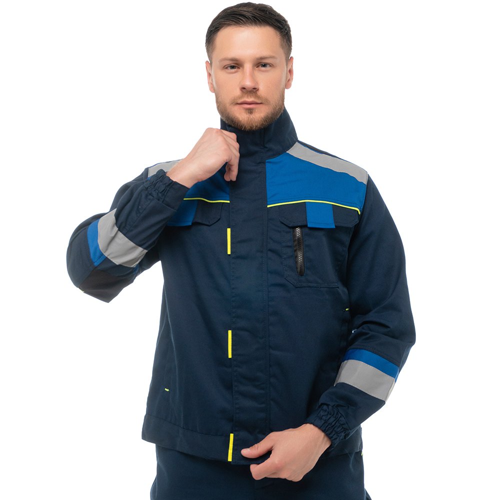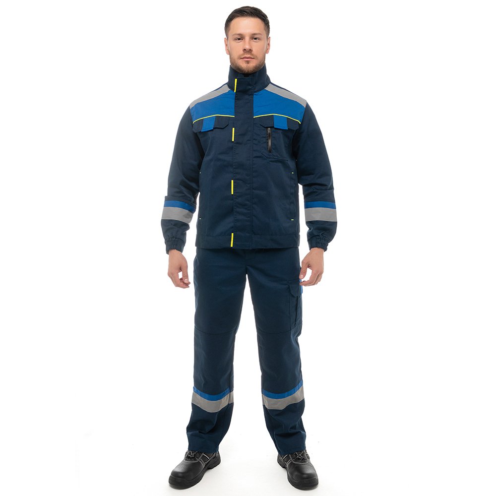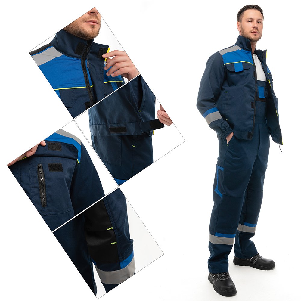 Для безопасной работы сотрудника в местах с плохим освещением на костюме Бруклин предусмотрена световозвращающая лента шириной 50 мм и декоративные элементы контрастного цвета.