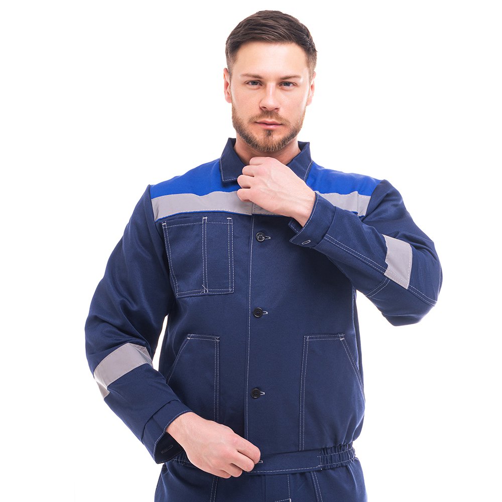 Для безопасной работы сотрудника в местах с плохим освещением на костюме Енисей предусмотрена светоотражающая лента шириной 50 мм. На костюме контрастная отстрочка.
